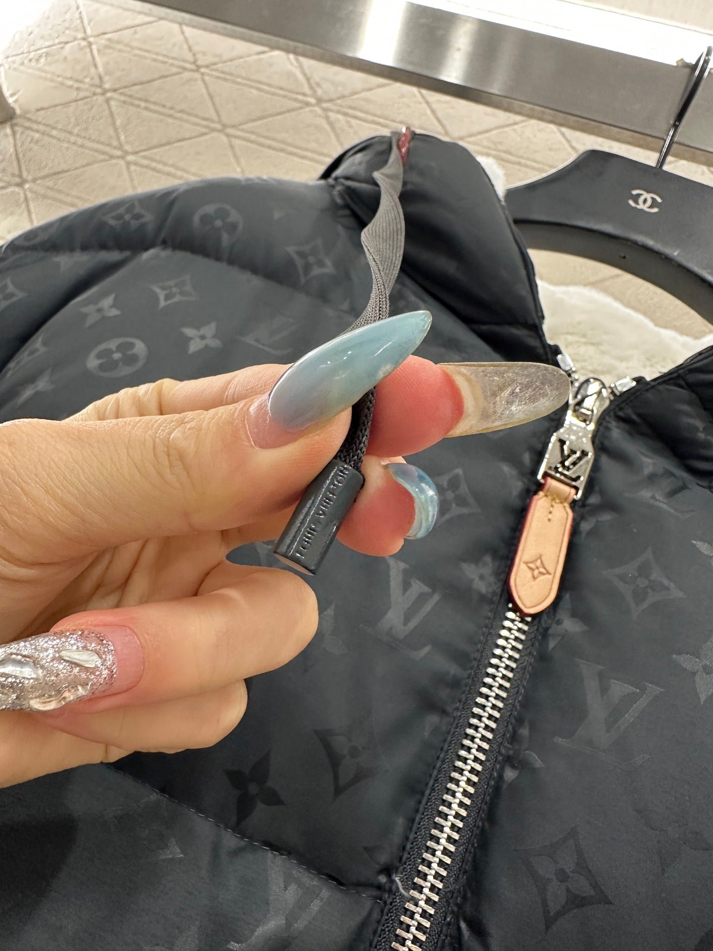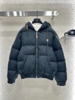 Long haired Teddy cashmere material, filled with down ➕ Featuring plush lining for dual warmth, a drawstring hooded down jacket with elastic thread edging for a snug and comfortable fit, making it easy to wear without appearing bulky. It has a rectangular grid texture and is paired with a full body clover jacquard letter, presenting a vintage and high-end style. The drawstring leather buckle echoes the concave convex logo on the sleeve side, creating a layered highlight that combines warmth and fashion, breaking away from the traditional bulky down. It is the preferred choice for layering in autumn and winter.