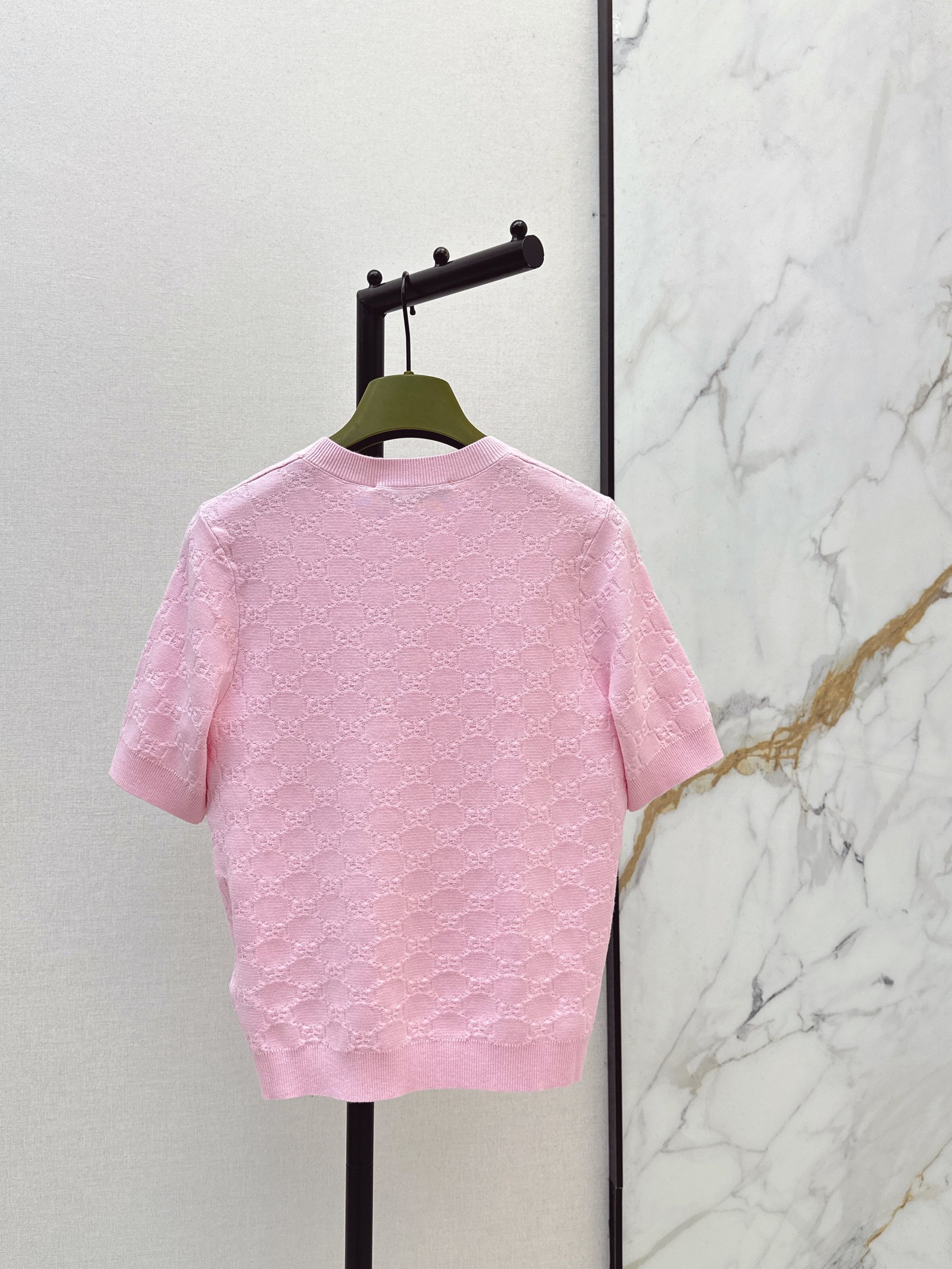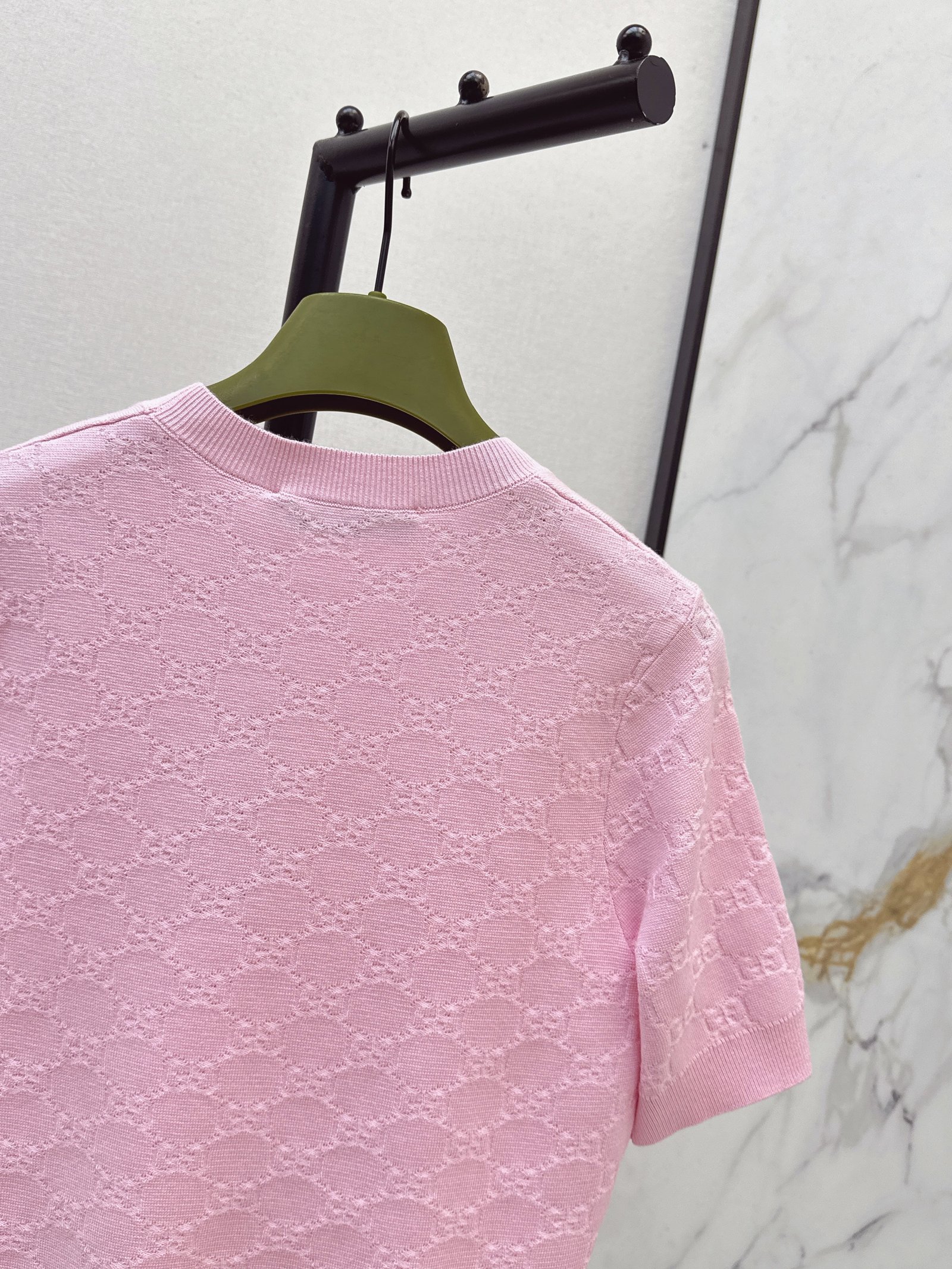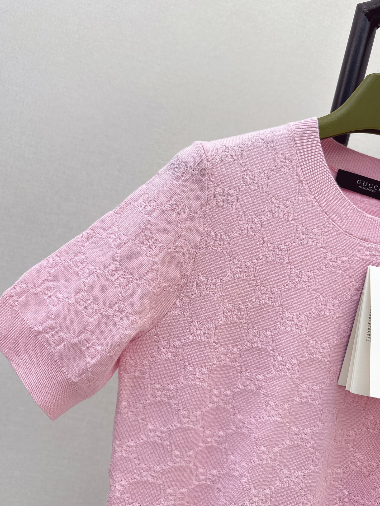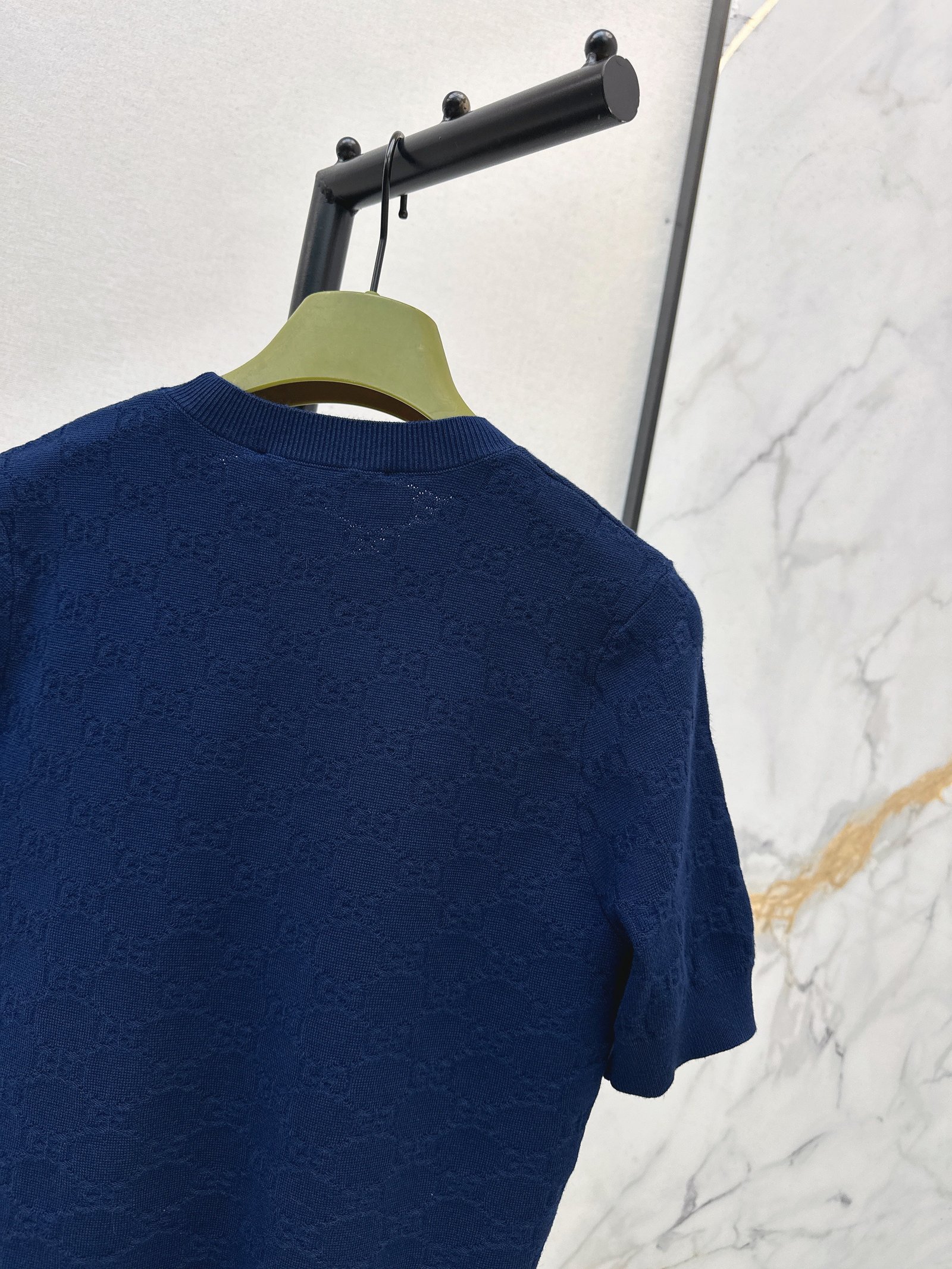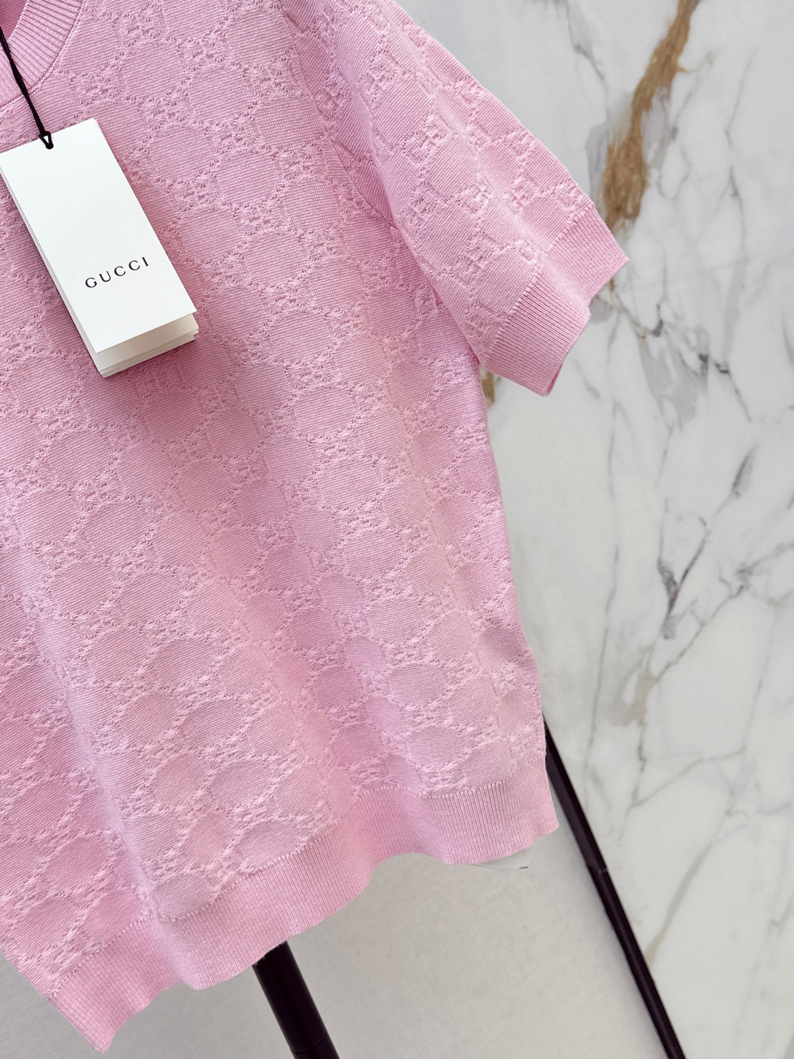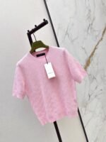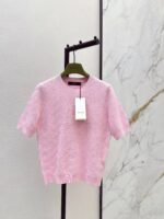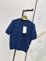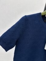 Classic round neck, slim fit design, exquisite and stylish. Imported machine-knitted double-knit with crochet detailing. Classic slim fit, incredibly elegant. A must-have for sophisticated women and young women alike. Original custom Swiss machine-knitted crochet logo. Imported cotton yarn, delicate texture, superb quality.