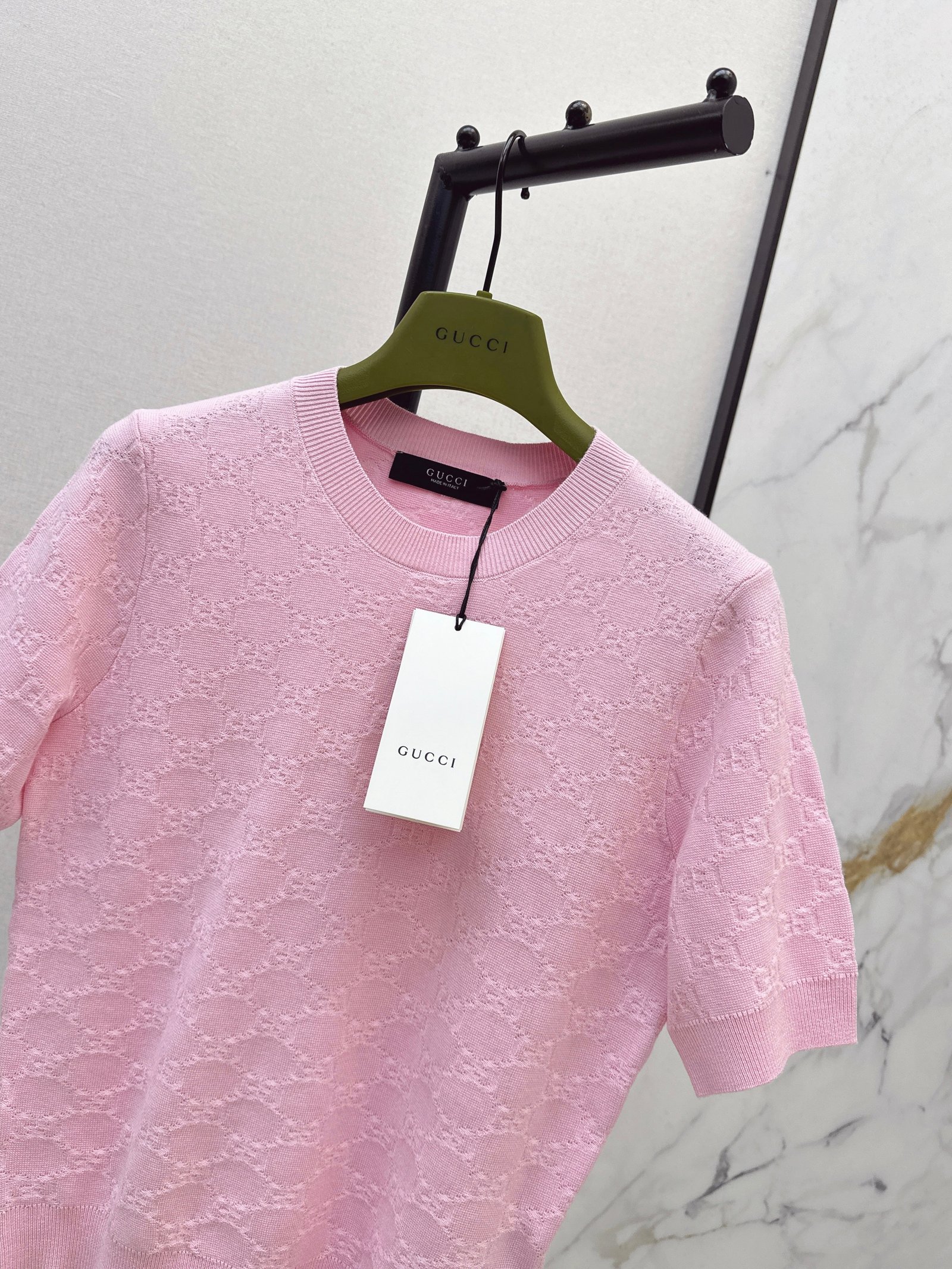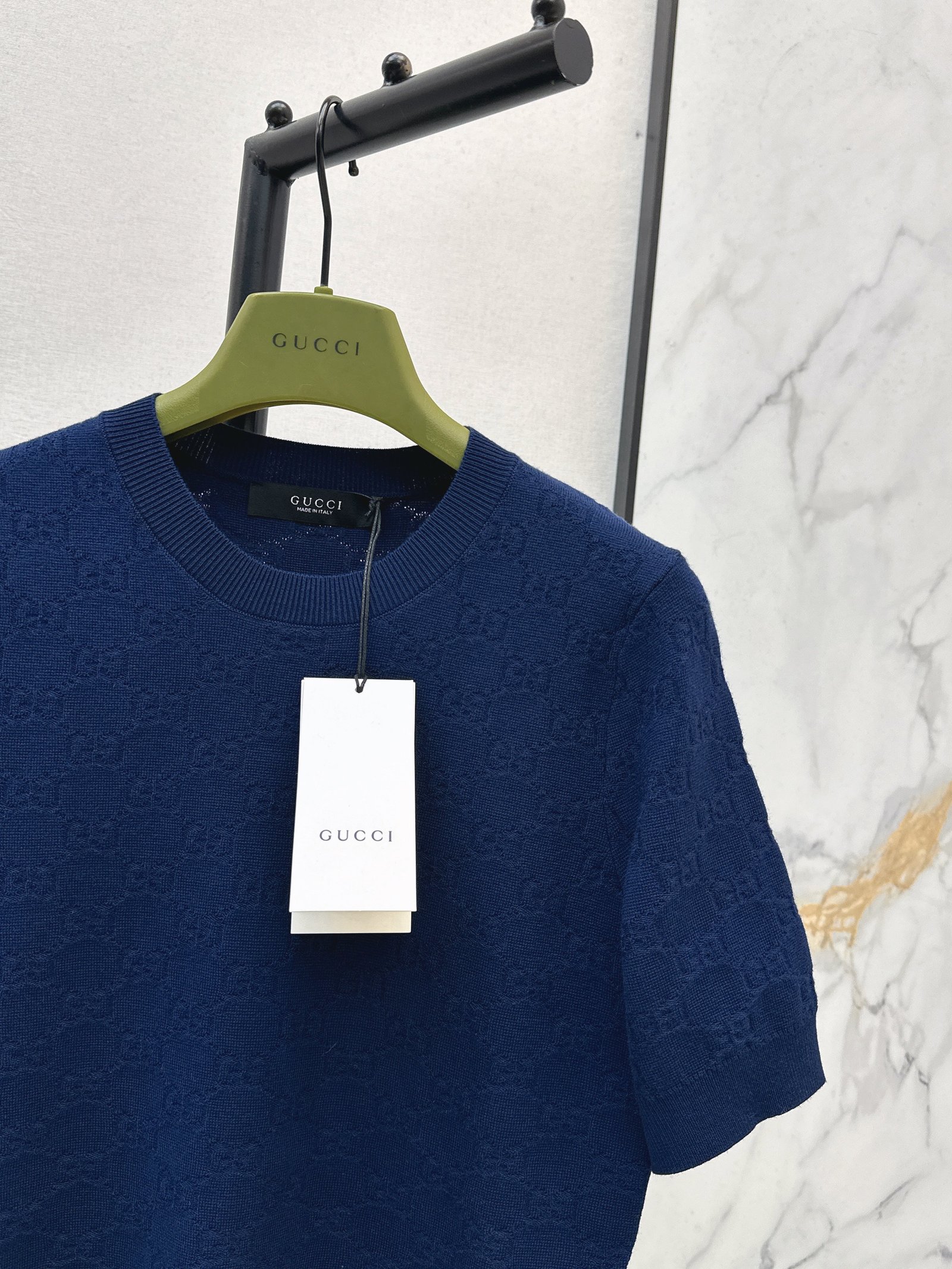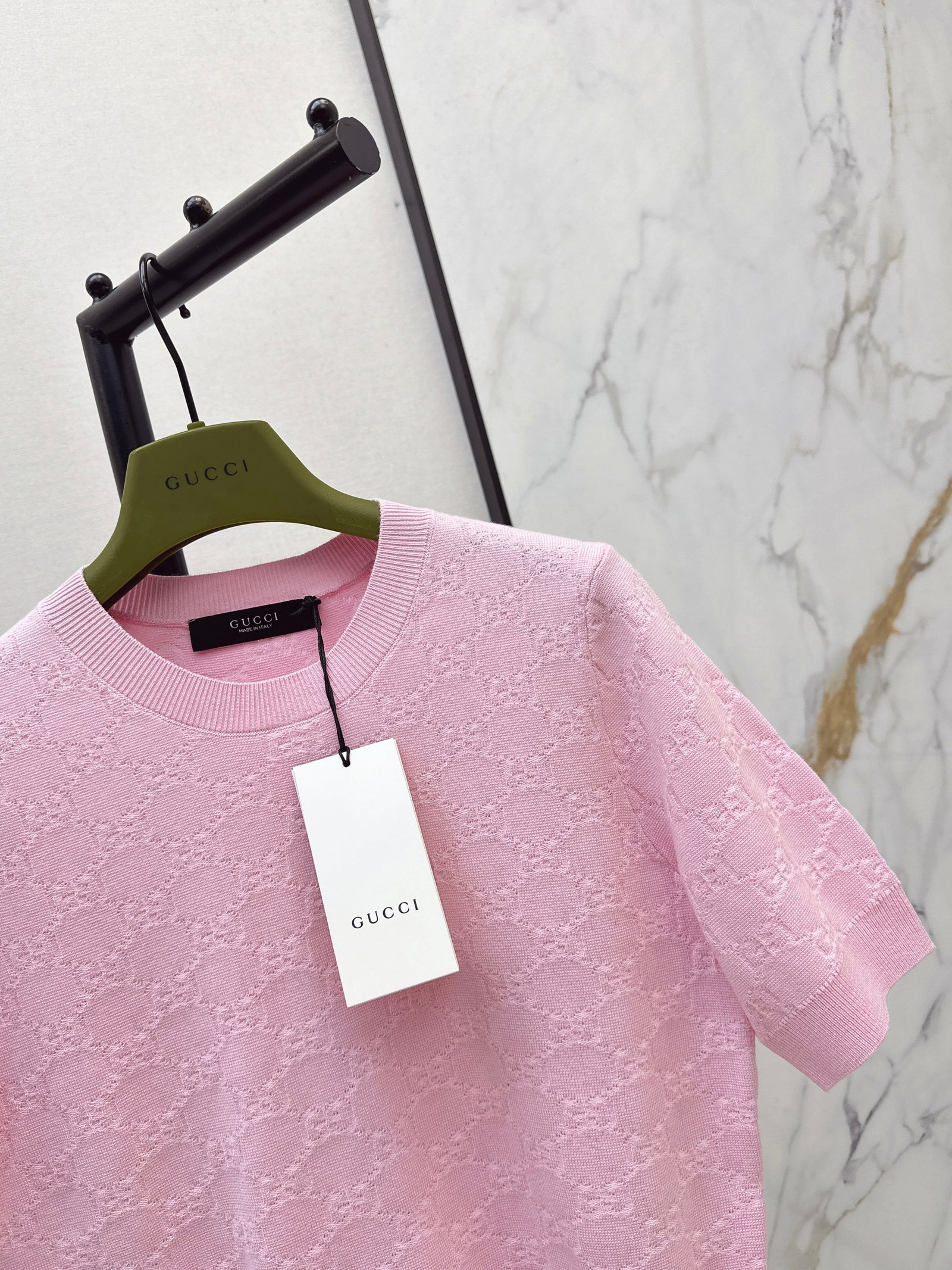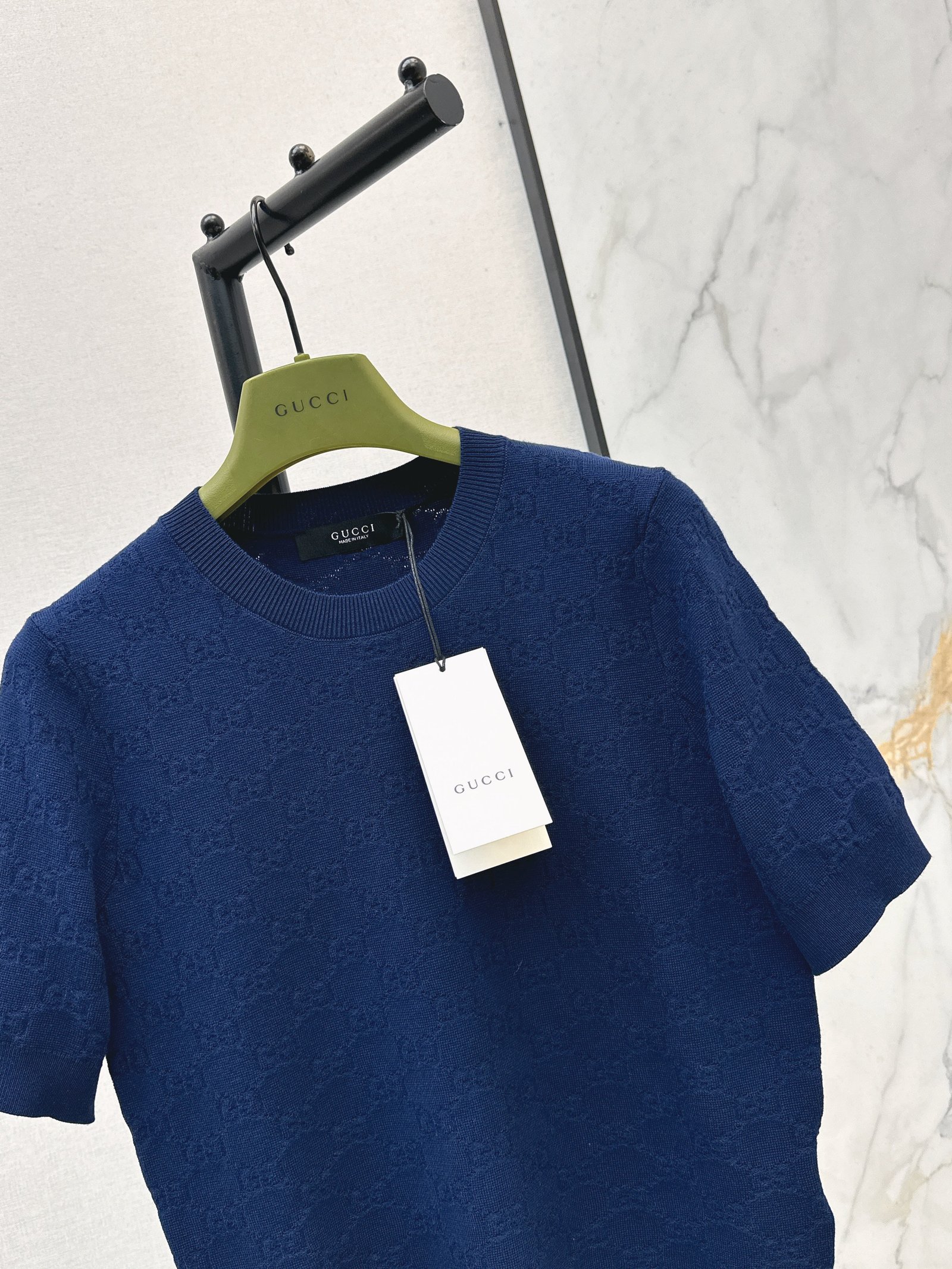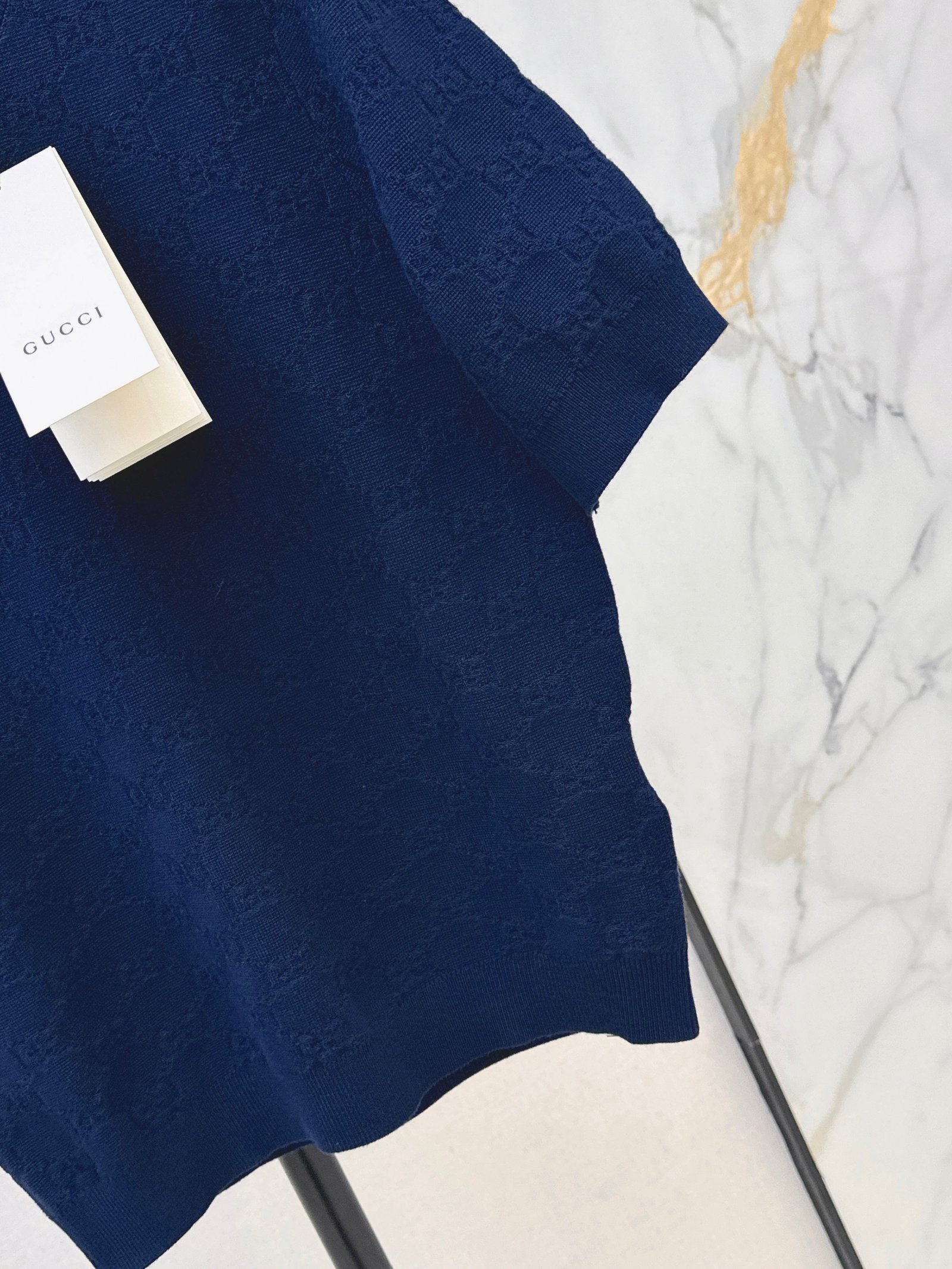 Classic round neck, slim fit design, exquisite and stylish. Imported machine-knitted double-knit with crochet detailing. Classic slim fit, incredibly elegant. A must-have for sophisticated women and young women alike. Original custom Swiss machine-knitted crochet logo. Imported cotton yarn, delicate texture, superb quality.