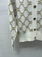 Comfortable and breathable, the iconic letter jacquard distribution is matched with a double C-button adjustable design on the open collar, highlighting the brand’s tone. The edging is outlined in the same color scheme to create a collision and add a sense of layering to the design. Versatile styles are not picky on age, skin color, and surface materials. The development of round neck long sleeved cardigans is fashionable and stylish for the upper body!