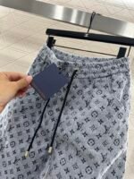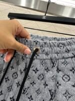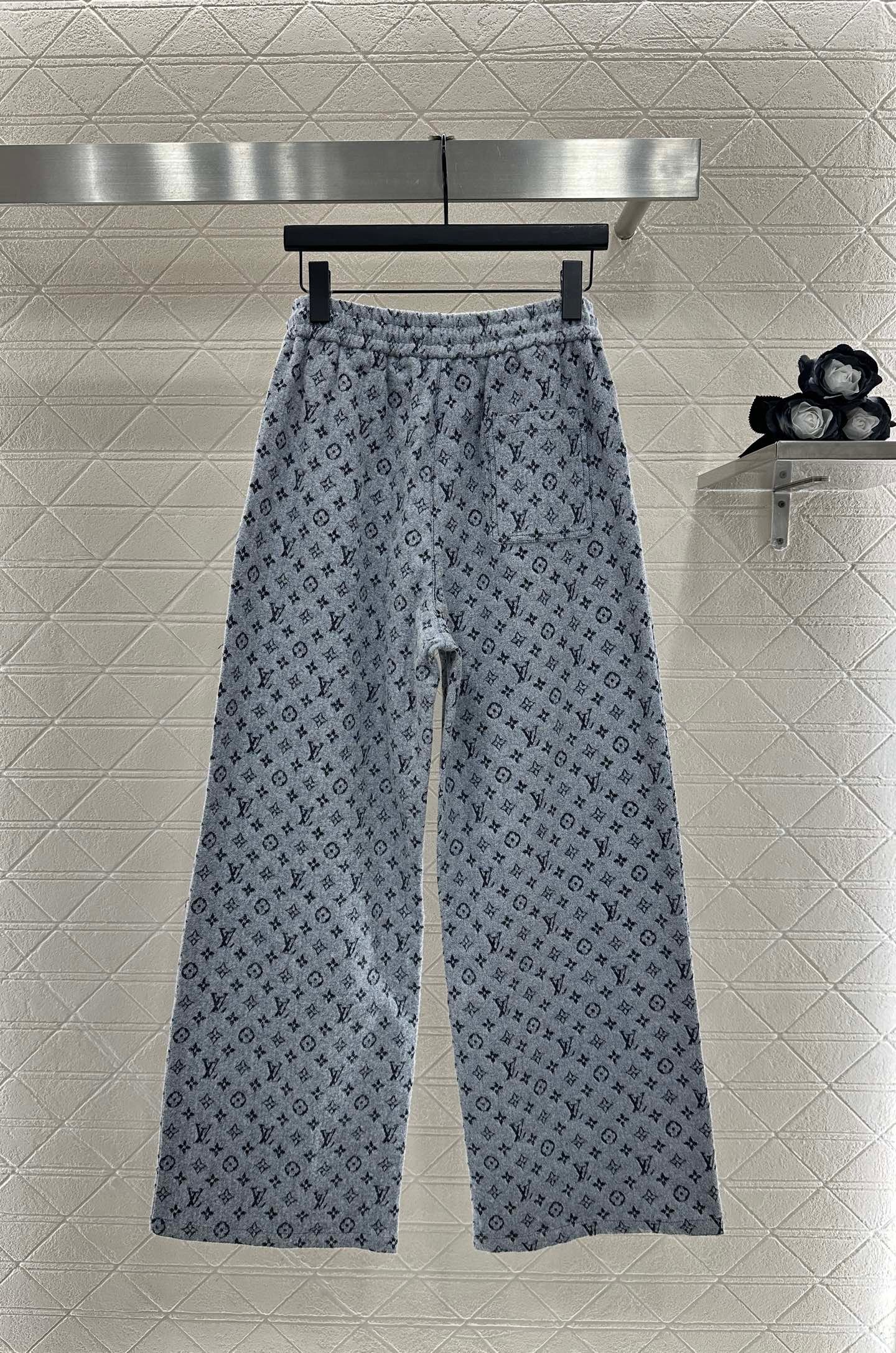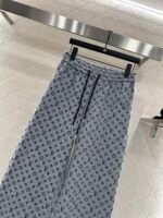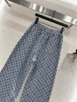 Jacquard material, high-end texture, crisp and stylish, short jacket jacket cut, black elastic thread edging throughout, adding a casual and fashionable feeling, light gray blue base throughout, jacquard clover letters embellished on top, highlighting the brand style, creating a fashionable style, matched with pants of the same series, echoing with old flowers, the brand’s high-end design sense is full, and it can be worn as a set or alone, making it fashionable and colorful all year round.
