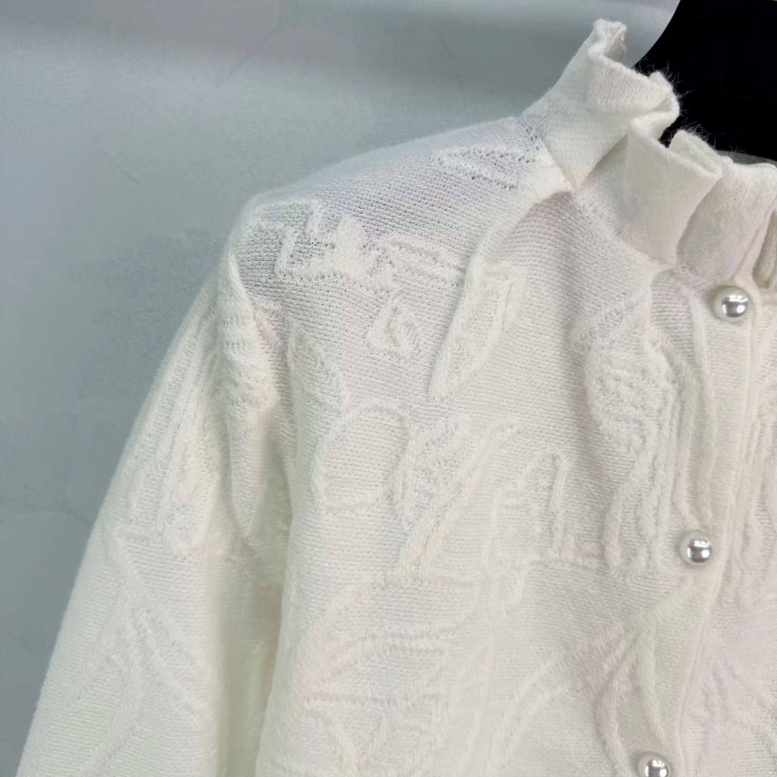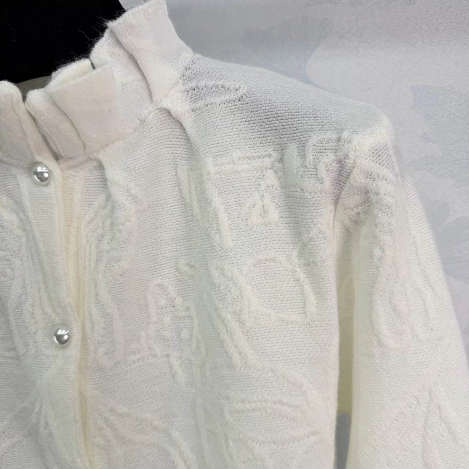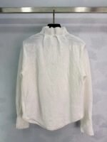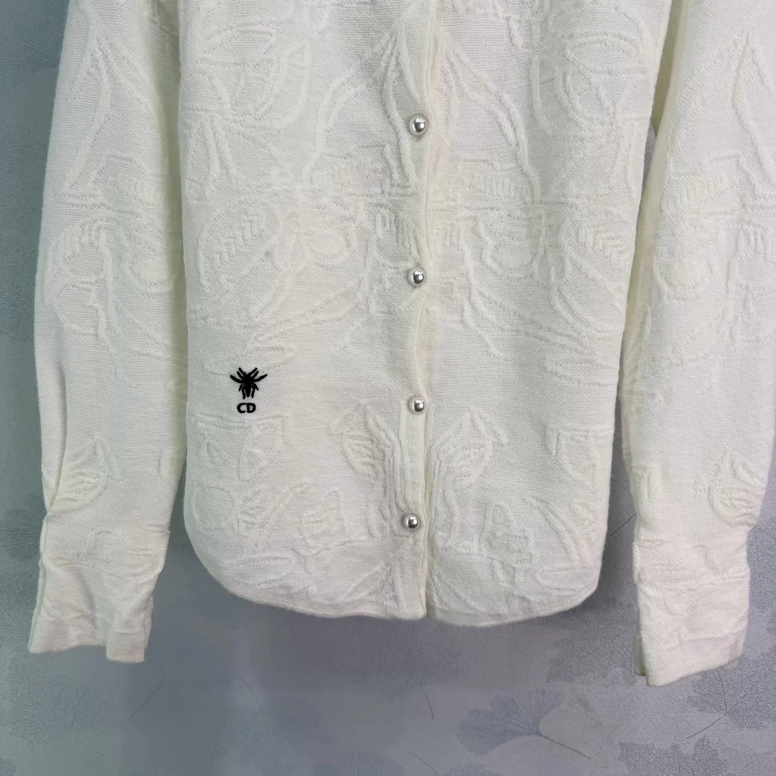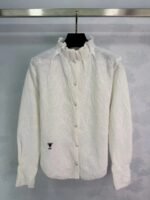 Made from exquisite jacquard fabric, the understated pattern exudes quality. The stand-up collar and pearl buttons add an elegant and vintage touch, while the embroidered CD logo in the lower left corner makes it instantly recognizable! The tailored fit makes it perfect for wearing alone or layering. It pairs well with skirts and jeans, making it easy to style for both work and everyday wear.