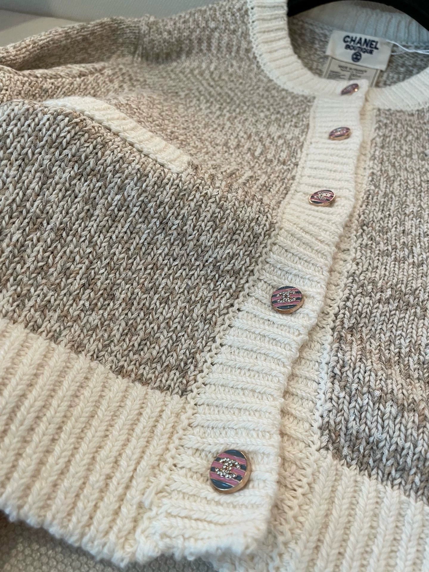 Custom multi-color double-knit yarn, contrasting color design for a slimming and elongating effect! A must-have for early autumn! One size fits all.