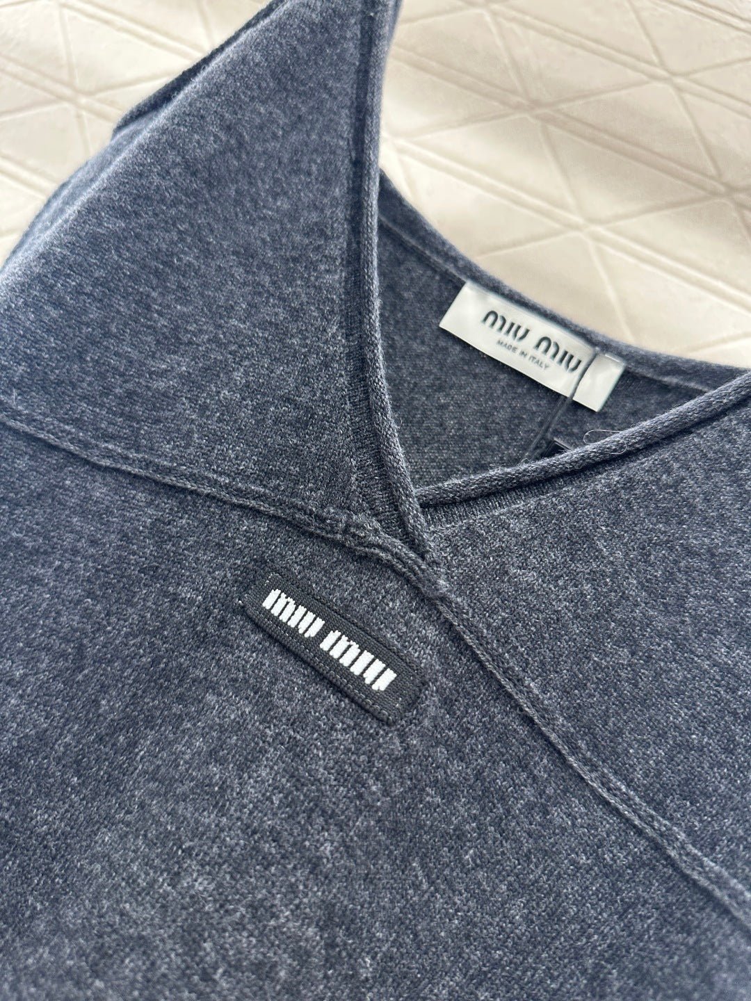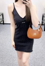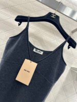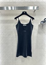 Woven from cashmere yarn, this luxurious and comfortable deep C-neck spaghetti strap knit dress features a solid color throughout, accented with a defined silhouette at the chest to effortlessly create a beautiful silhouette. A centrally placed logo adds a subtle yet stylish touch. Perfect for a vacation or any occasion, this spaghetti strap dress exudes sex appeal.