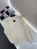Woolen yarn weaving, premium texture, comfortable and soft, threaded round neck sweater cut, dense knit torso with two crochet sleeves hollowed out, rich layers, better design effect, plush double C letters on the chest ➕ The three-dimensional flower knitted decoration with a surrounding distribution highlights the brand’s tone. The regular shoulder style is simple and versatile for autumn and winter daily wear, relaxed and fashionable