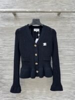 Best socialite style waist cinching design on camera! Photos cannot capture beauty! Customized gold buckle with stunning and dazzling physical appearance! Temperament V-neck classic double pockets, high-end antique gold water diamond buckle elegant temperament sweet and girlish feeling! The upper body of the model looks extremely slim! Temperament age reducing item.