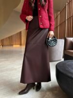 It gives off a sophisticated, Korean-style vibe, perfect for dates or commuting. The custom-woven fabric is thick and features subtle sequin details upon closer inspection.