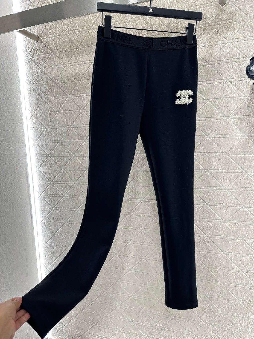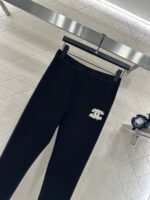 Made of highly elastic material, these leggings offer excellent stretch and comfortable wear. The design lifts and shapes the hips, creating a slimming effect. A logo ribbon at the waist and a 3D, fluffy double-C logo at the hips add a touch of brightness to the overall look. They pair well with various tops, making them versatile and a must-have for everyday casual wear and sportswear. Slimming and flattering, they are stylish and chic.