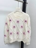 Lingge Flower Embroidered Knitted Sweater