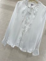 Crafted from satin fabric with a lustrous sheen, this comfortable drawstring shirt effortlessly exudes sophistication. The silky satin material creates a soft-focus effect, while the drawstring detail at the collar adds a touch of gentle movement. Its minimalist silhouette offers maximum flattery for all body types. The crisp white exudes pure elegance, while the burgundy option radiates vintage richness. Whether paired with a suit or a skirt, it effortlessly creates a relaxed yet refined atmosphere—truly the quintessential shirt for those seeking timeless sophistication.