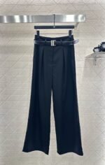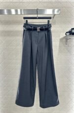 Made of human cotton material, with a glossy and flowing texture, it is easy to wear. The wide leg straight leg pants are cut in a three-dimensional manner to create pleats and create a more streamlined body shape. The suit material is stylish and elegant, with a high-end and minimalist style. It is matched with a logo engraved on the waist belt, giving it a relaxed and elegant temperament, strong inclusiveness, and a slimming and long leg look. It is full of simple and old-fashioned style