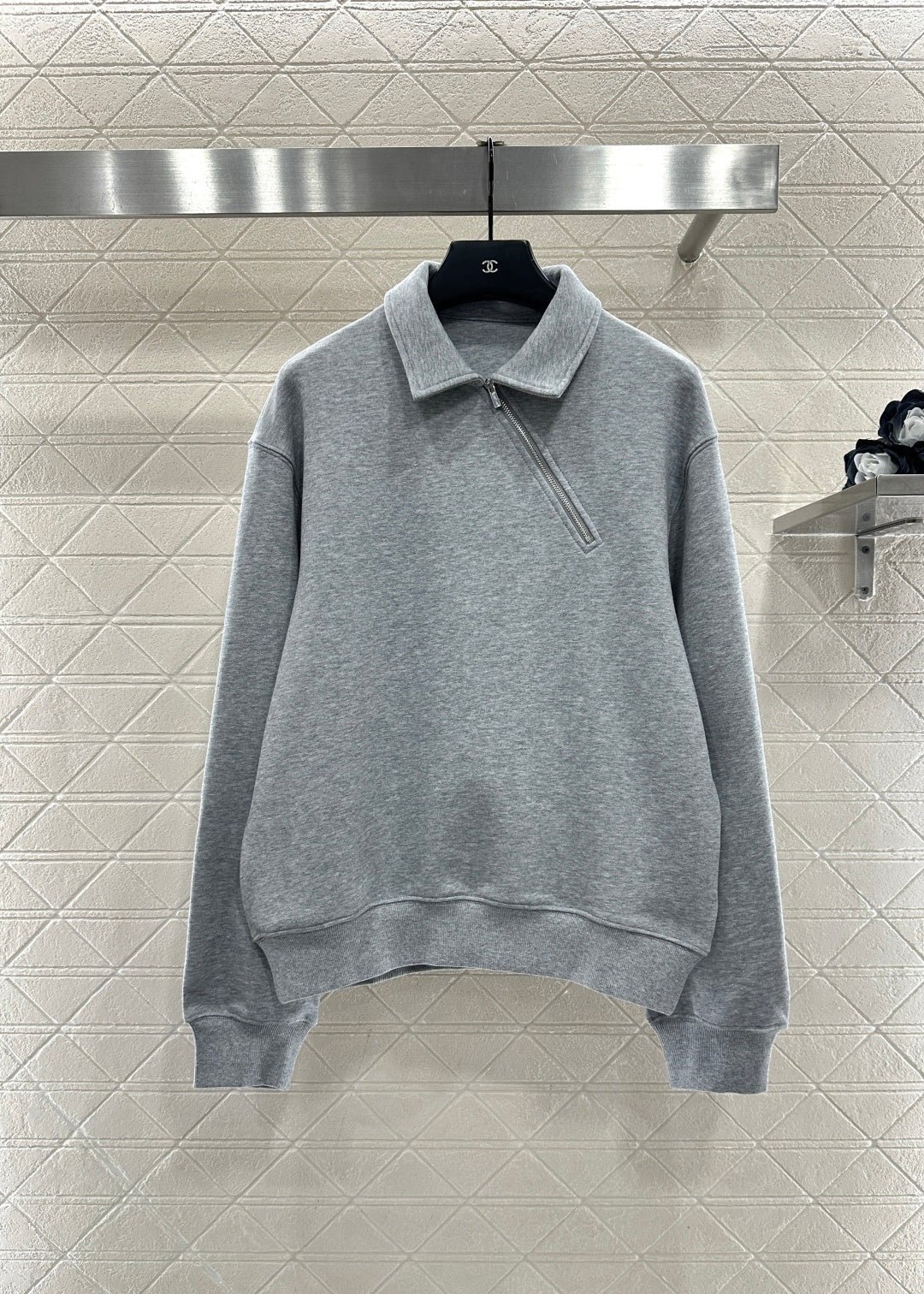 Lolo-front Diagonal Zipper Sweatshirt