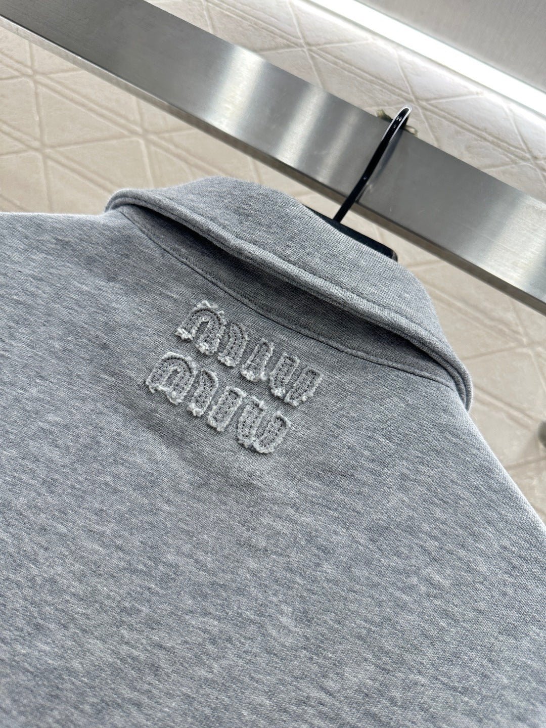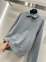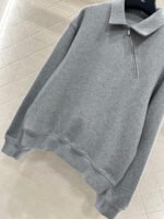 Crafted from pure cotton, this sweatshirt is delicate, soft, and stylish. It features a collared zip-up design, a side-swept zip-up front, and elastic ribbed trim for a sophisticated look. The overall design exudes a retro vibe, while the 3D logo on the back collar adds a striking touch. The sweatshirt has a strong preppy style and pairs perfectly with matching trousers for a fashionable and trendy look.