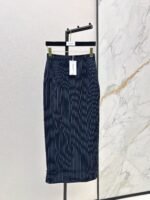 The navy blue striped fabric with stripes and a silhouette creates a seamless and streamlined silhouette. The skirt features a short pleated design that optimizes the body proportions, making it stand out with long legs. Seoul transfer students feel a sense of age reduction and a sense of ruggedness