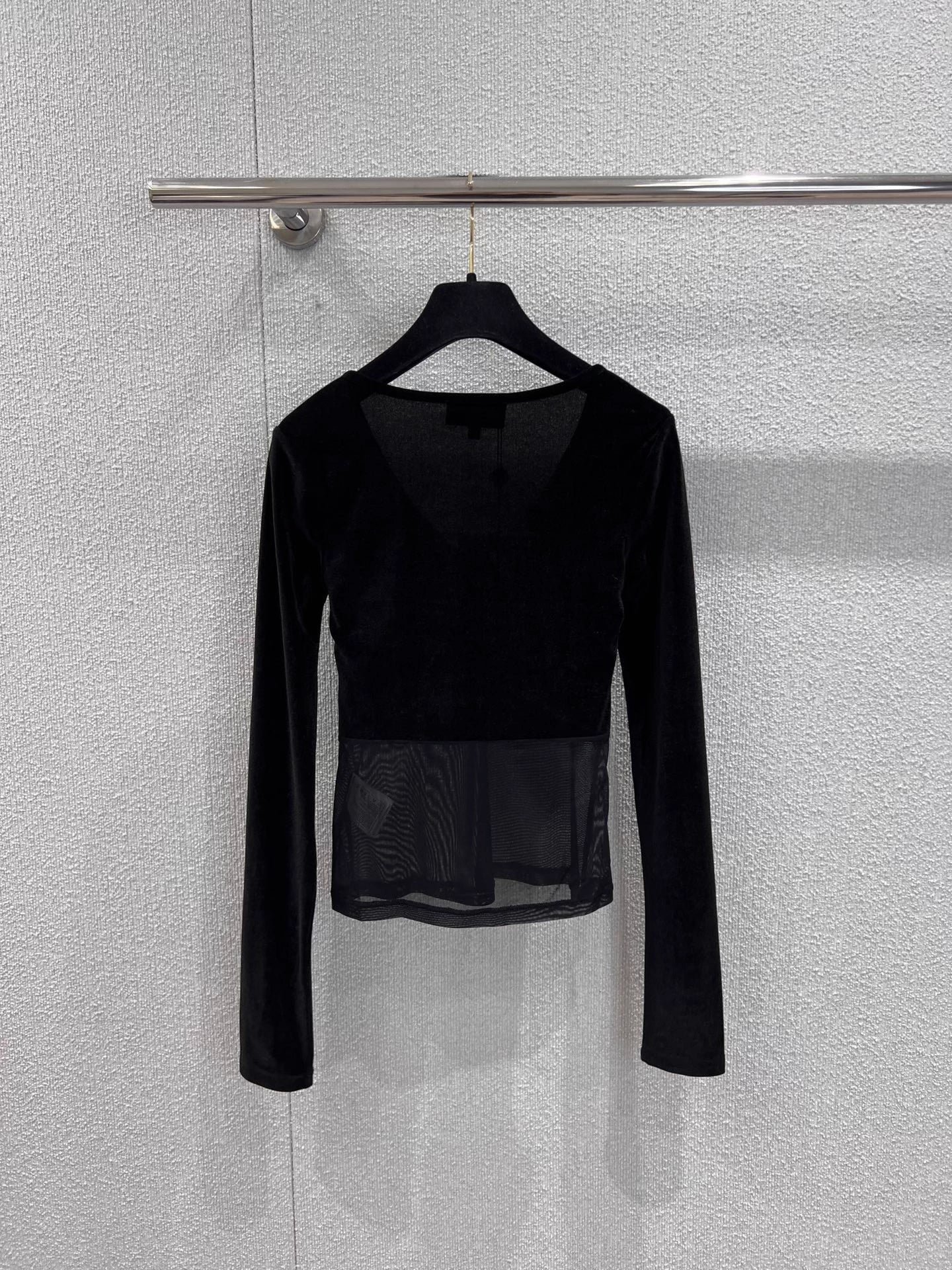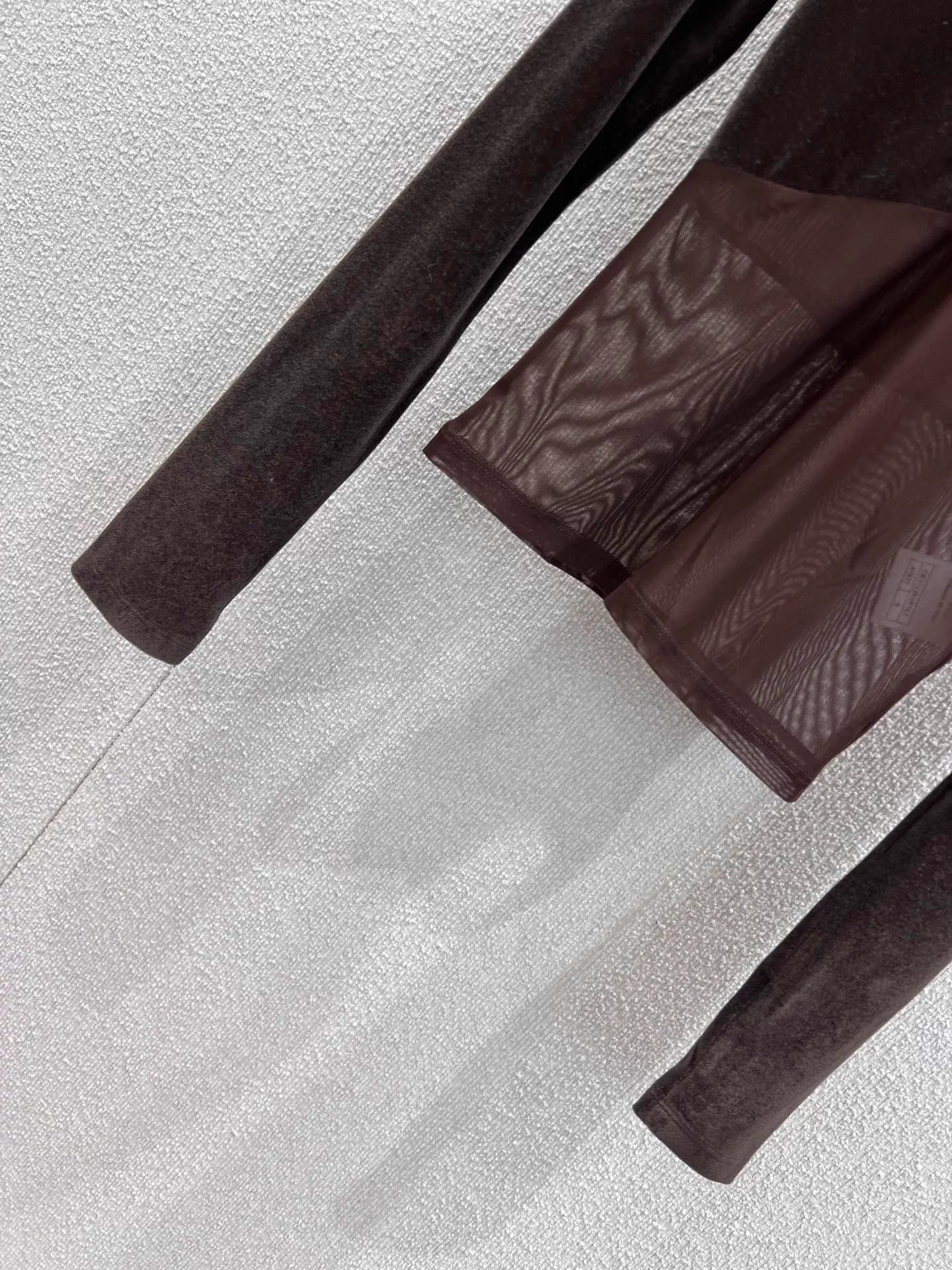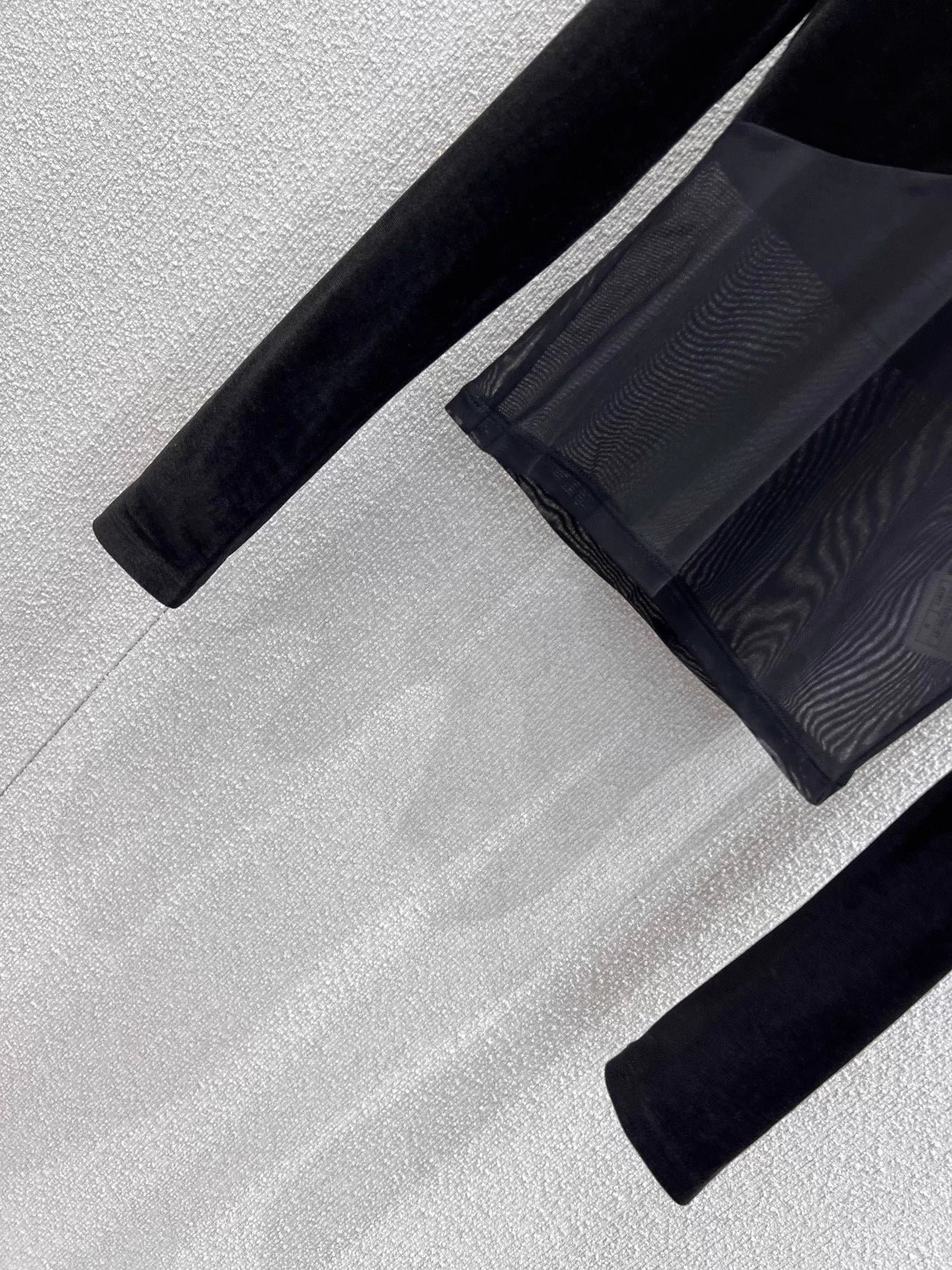 Selected velvet and mesh paneling, soft and layered texture