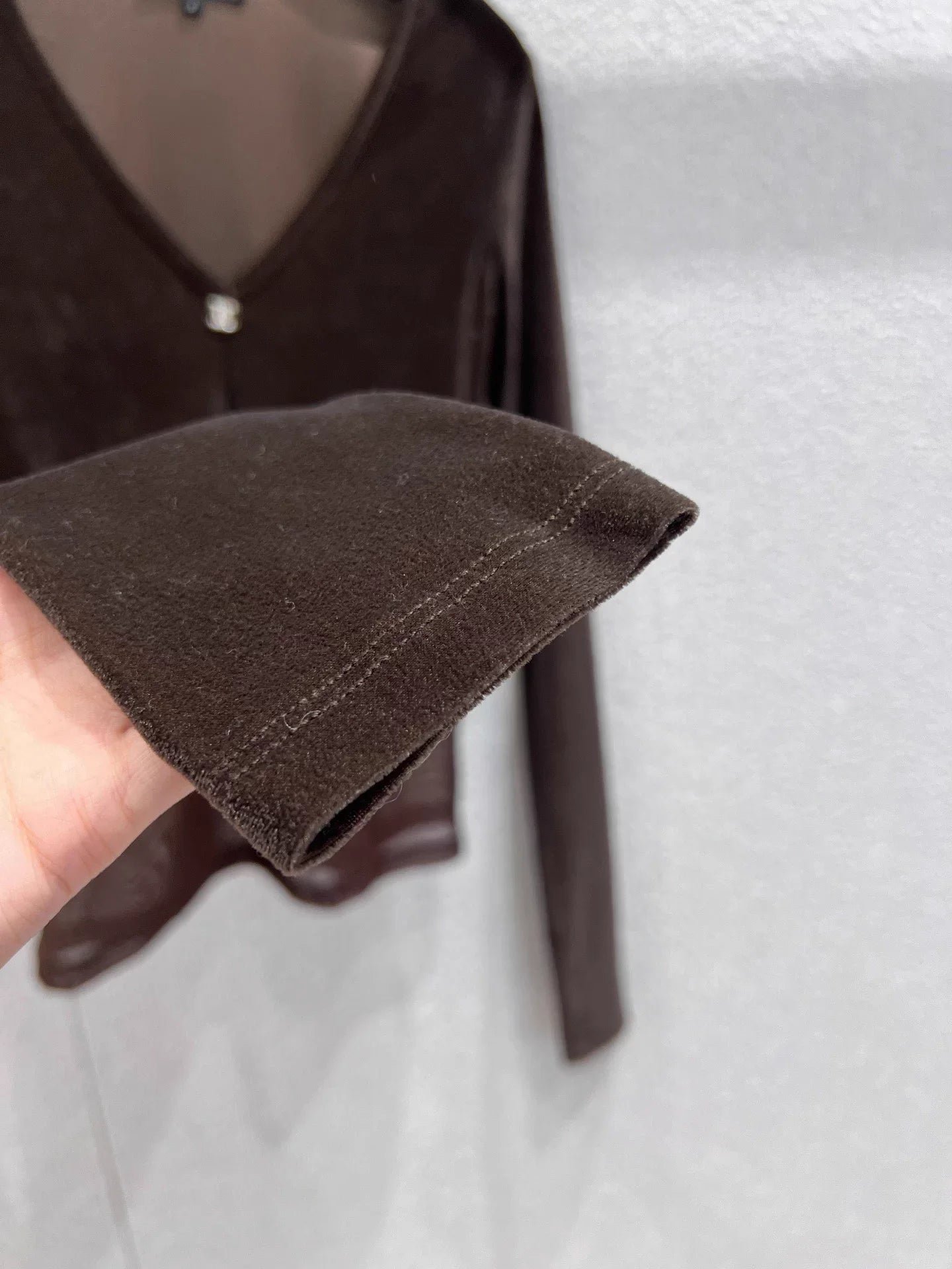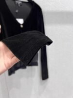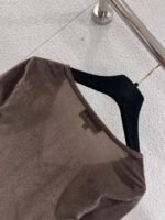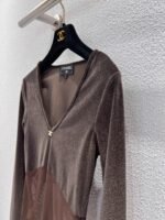 V-neck fitted cut flatters the figure. Available in black and brown.