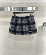 Plaid Teddy Bear Plush Midi Skirt