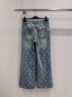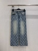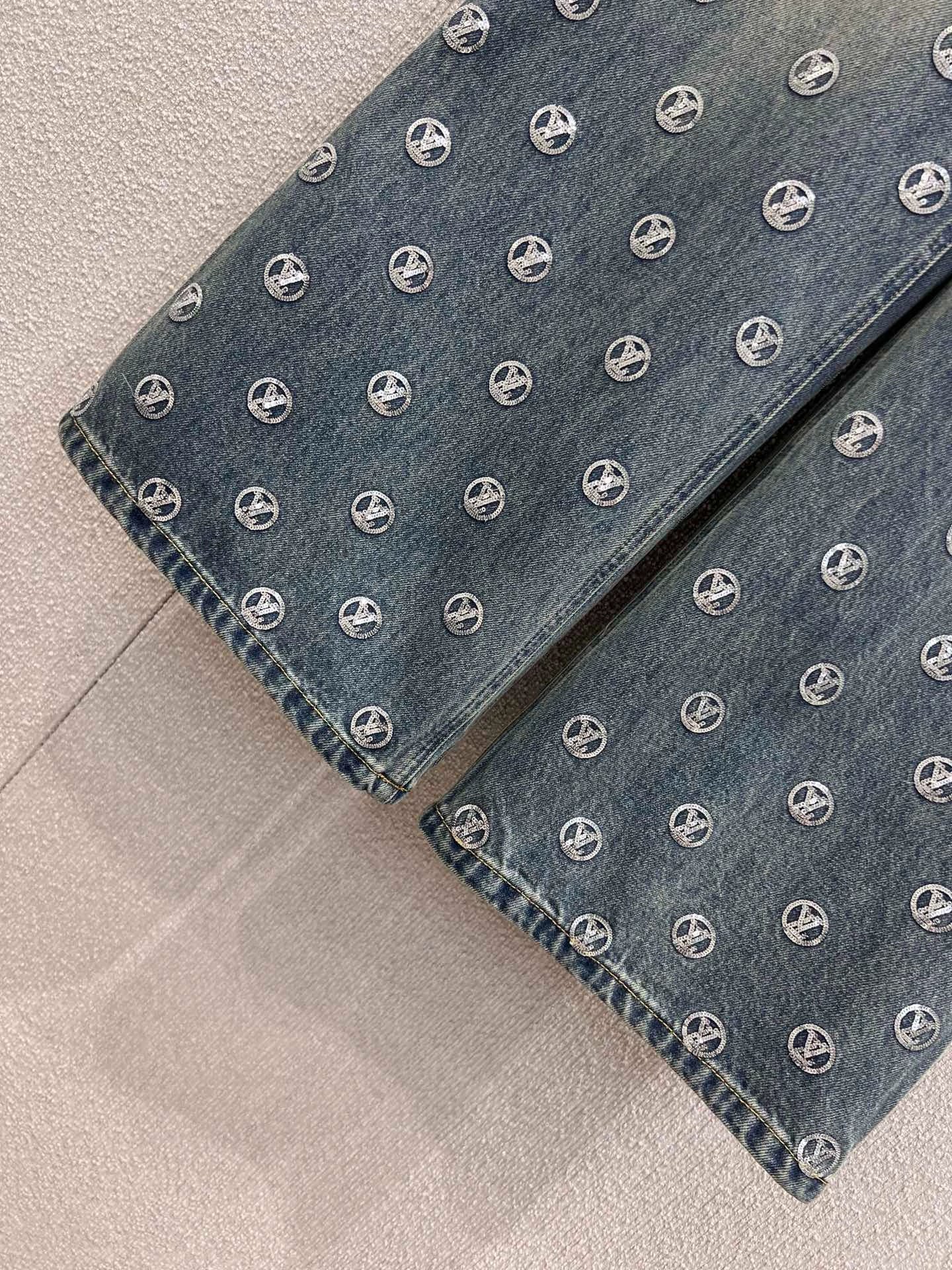 Denim fabric is soft yet structured, the sequin detailing is exquisite and doesn’t look cheap, and the classic monogram pattern is instantly recognizable. The light-wash denim base with all-over LV monogram sequins creates a bling-bling effect that’s sure to turn heads, while the wide-leg design is both flattering and slimming.