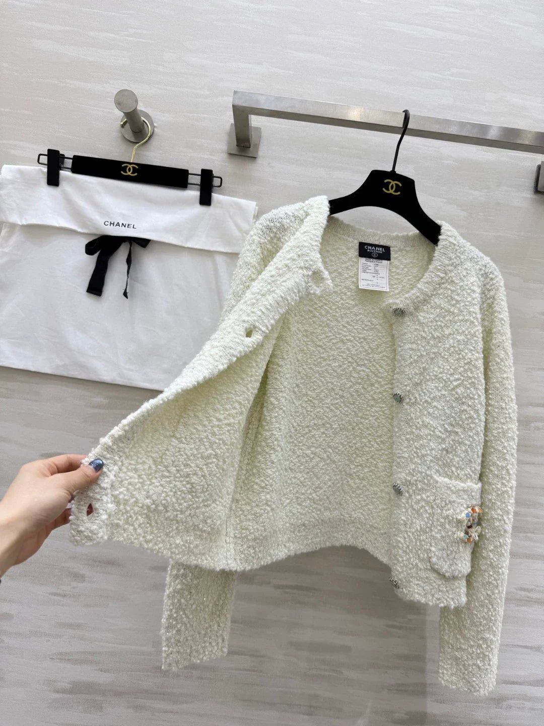 Classic crew neck design, regular fit, high-quality fabric, soft and comfortable to the touch, elevating its style. Fashionable and versatile. Custom-designed colorful double C embellishments add a touch of sophistication. Perfect for autumn and winter. Pairs well with jeans or skirts. A must-have for your everyday wardrobe