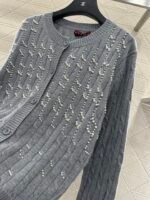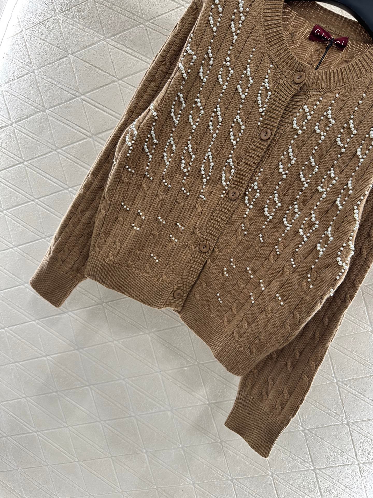Wool yarn weaving, density fine needle weaving, clear wool texture, comfortable skin, round neck and shoulder button cardigan cutting, all vertical Fried Dough Twists crochet, with dense pearl embellishment, density combination to form a sense of hierarchy, reflecting the gorgeous and relaxed feeling, the leader’s mouth hem thread closing, full elasticity, rich color matching, design hierarchy, shape inclusive, wear fashionable age.
