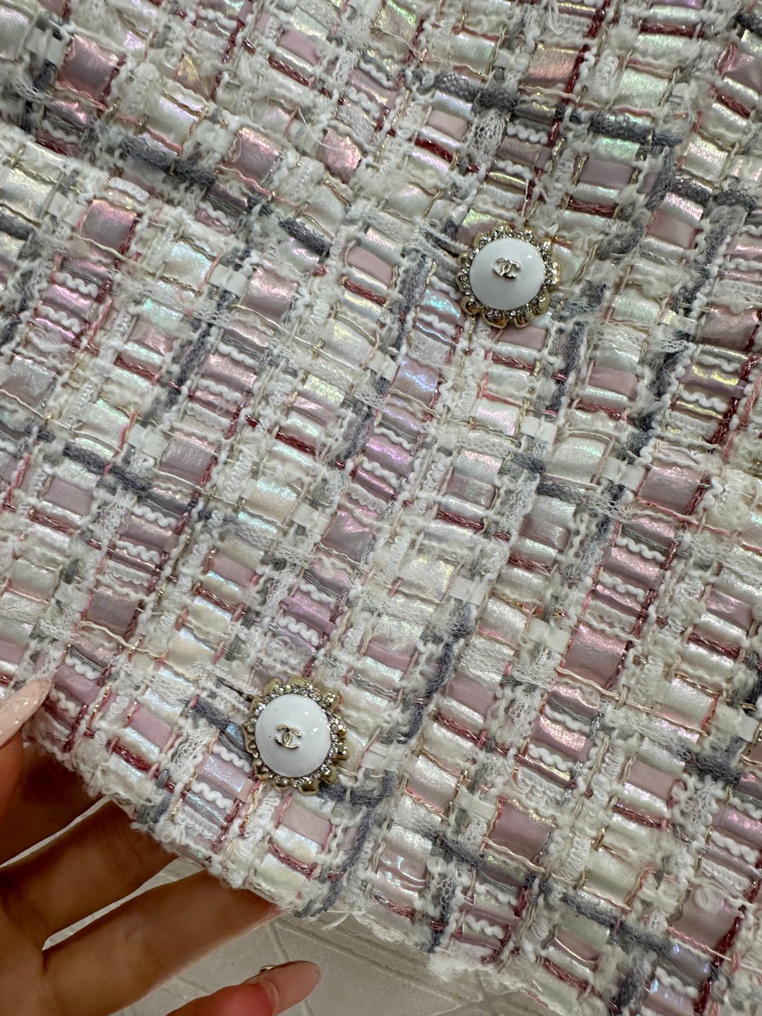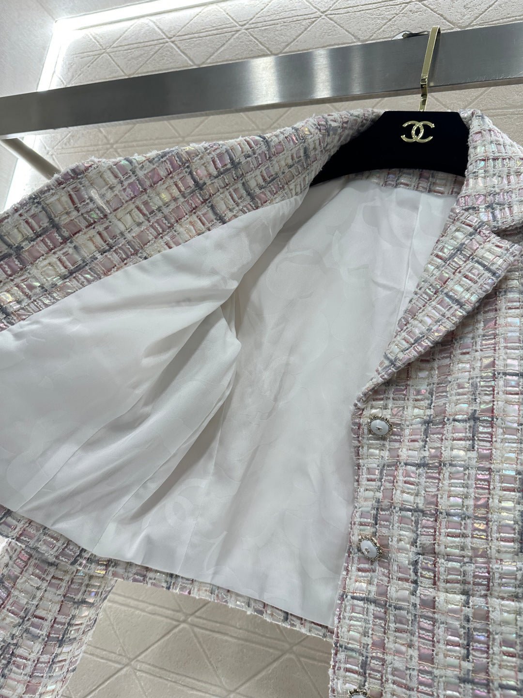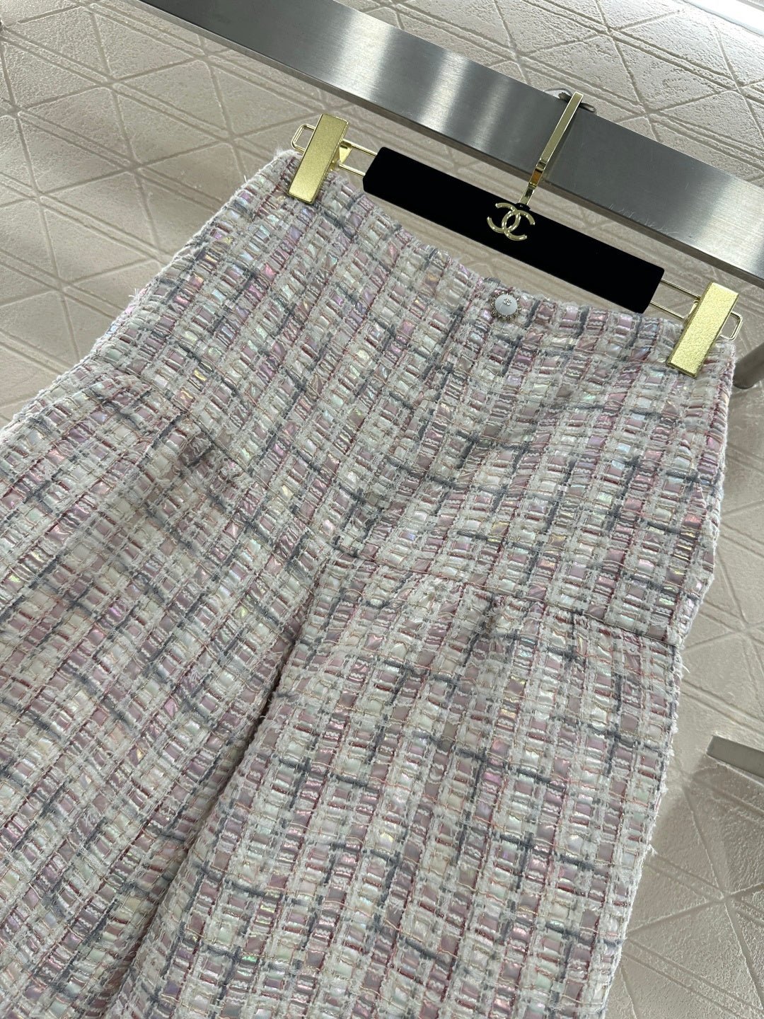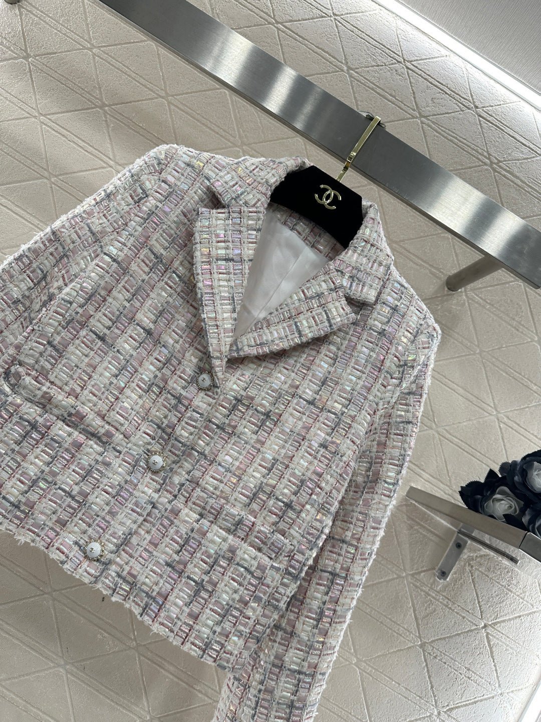 Made from imported coarse wool fabric, this high-quality, premium-featured short-sleeved dress and trouser set features a lapel, structured shoulders, and a soft pink and purple tweed that exudes romance. The short jacket is tailored to flatter the figure, while the wide-leg trousers offer a relaxed yet slimming silhouette. Wearing the set creates an elegant yet casual sophisticated look, or you can style it separately with knitwear or jeans for different looks, effortlessly achieving a sweet and edgy French chic style suitable for various occasions.