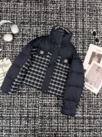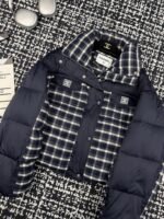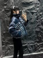 Plaid patchwork stand up collar goose down suit