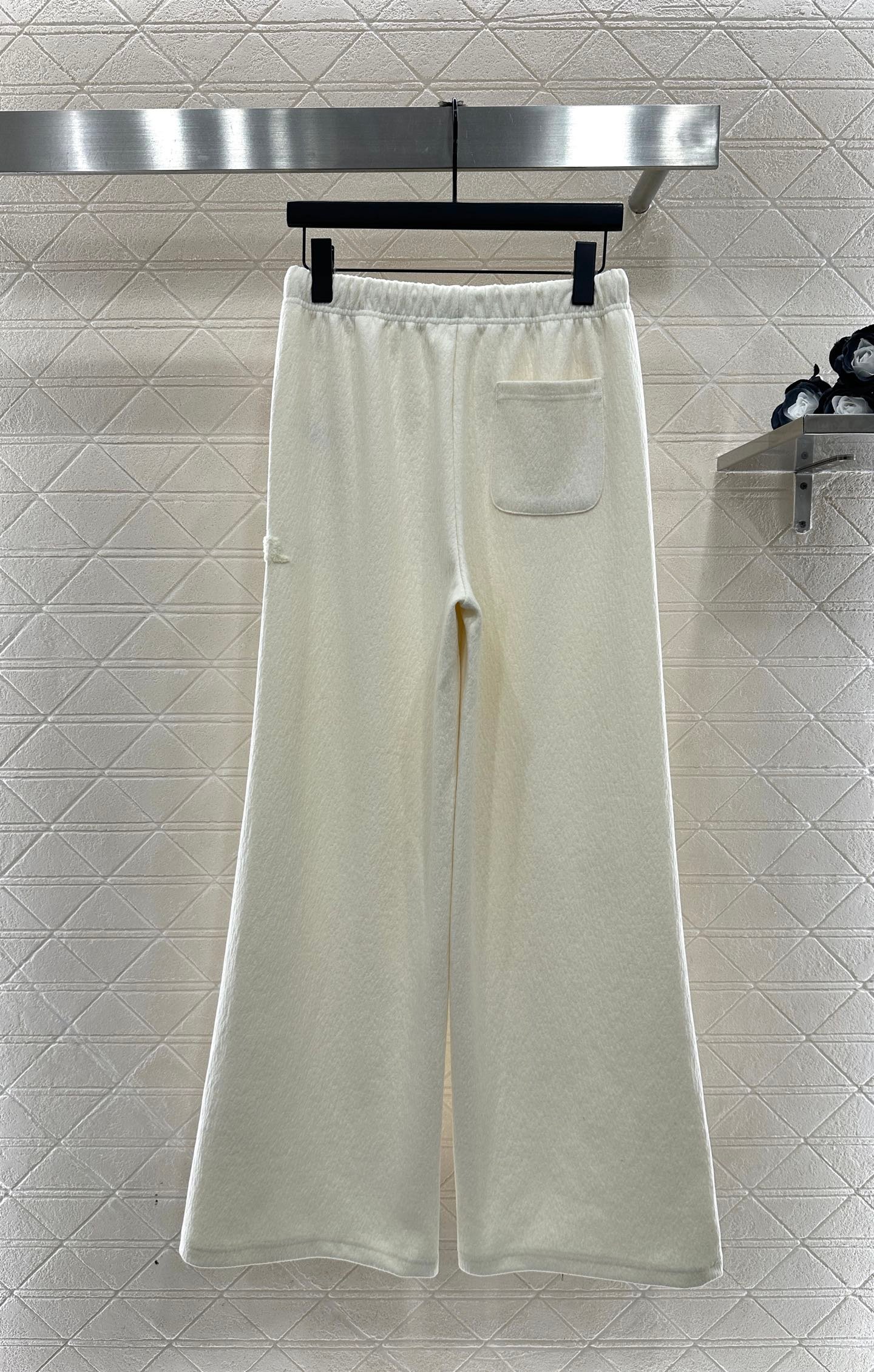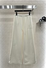 Plucked letter high waist wide leg pants