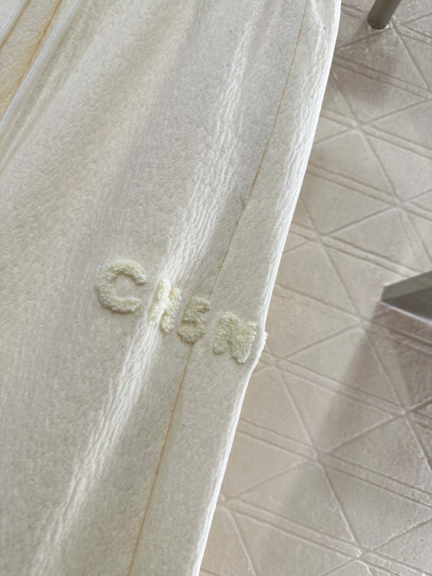The coarse woolen material has a distinct texture and superior quality. The coarse floral woolen fabric creates a small fragrance style model, and the high waisted pocket half body short skirt version has a straight tube slim fit and stronger inclusiveness. The overall charcoal black woven fabric is interwoven with sequins to form a grid texture, elegant but not dull. The molded water diamond double C round buckle single-sided waist decoration is luxurious and charming. Showcasing the style of a high-end socialite, with an elegant temperament, it is the first choice for autumn and winter fashion