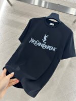 Made from mercerized cotton, this breathable and comfortable shirt boasts a premium feel. The classic short-sleeved T-shirt features an embroidered plush color-blocking detail, outlining the logo for a clean and three-dimensional look that enhances brand recognition. The classic black and white color scheme is versatile and stylish, perfect for everyday wear.