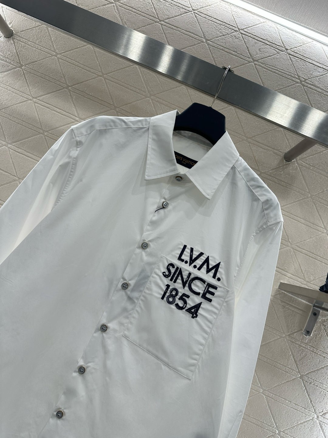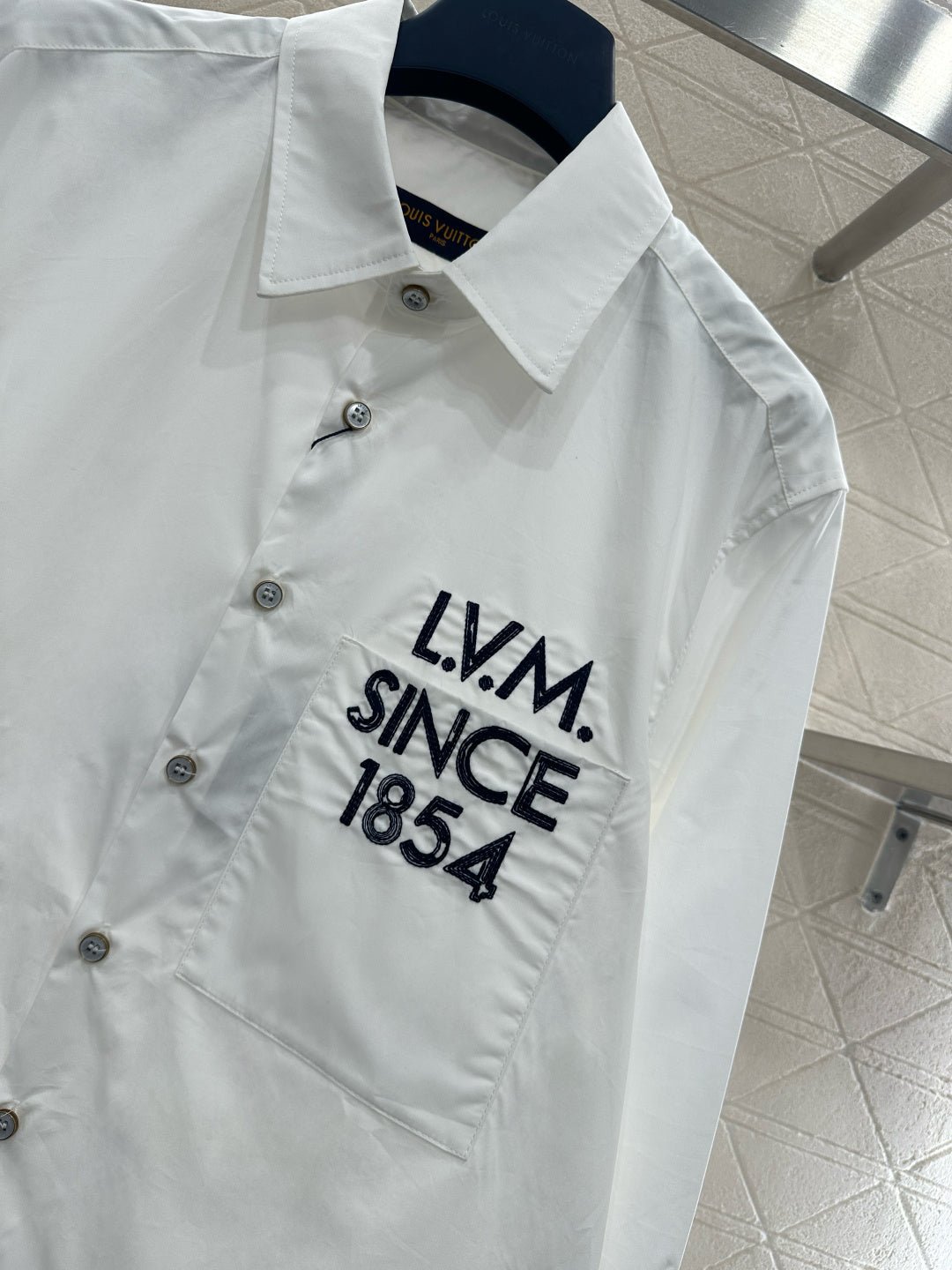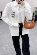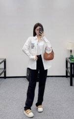 Made of 100% cotton, this shirt boasts a delicate texture and comfortable wear. The long-sleeved, open-front design strikes a perfect balance between simplicity and sophistication. The clean, pure white fabric exudes a sharp, clean look, while the embroidered “SINCE 1854” lettering on the pocket adds a subtle touch of elegance. This classic shirt flatters all body types; worn alone, it conveys a sophisticated, professional vibe, while layering it creates a casual, street-style look. One piece unlocks countless styling possibilities, making it an indispensable wardrobe staple. Simple yet high-end, the classic straight silhouette is slimming and relaxed, allowing for effortless and youthful styling. It’s a fashionable and chic piece.