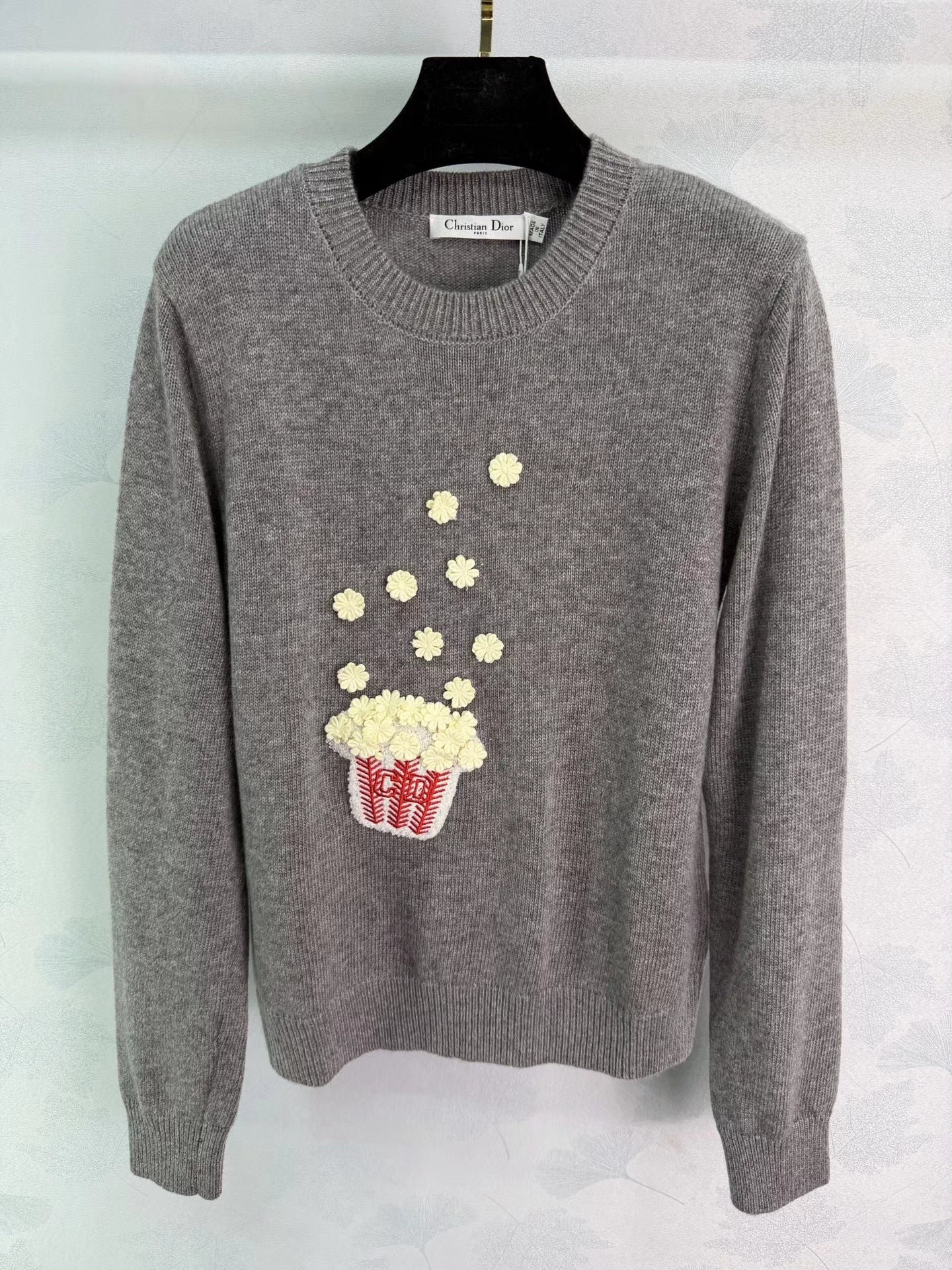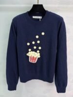 Made from a wool and cashmere blend, this sweater is incredibly comfortable! The 3D popcorn embroidery and red and white striped details add a playful and cute touch. The loose fit is flattering and suits all body types. The round neck pullover design makes it suitable for everyday wear, whether for commuting or casual occasions. Effortlessly achieve a relaxed, Korean-style look.
