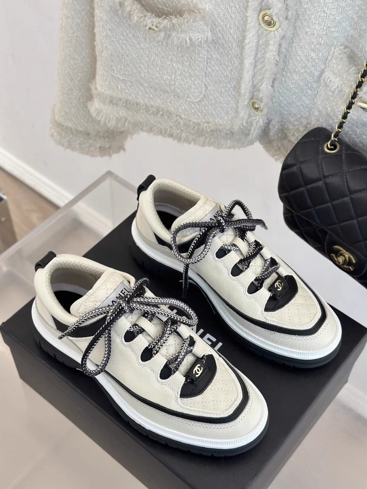 Retro Diamond Pattern Panda Sneakers