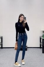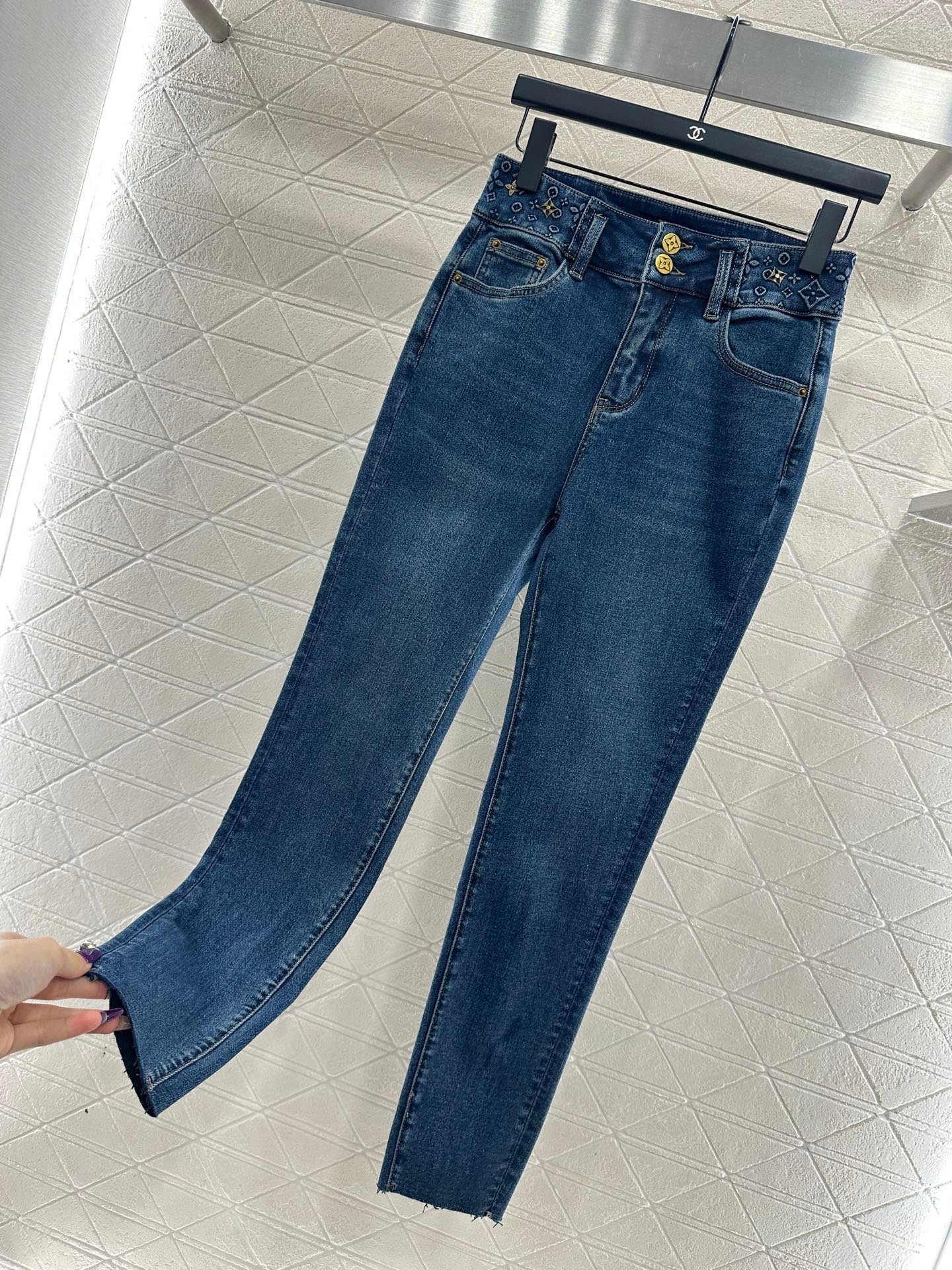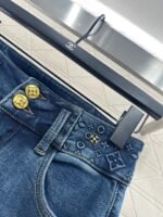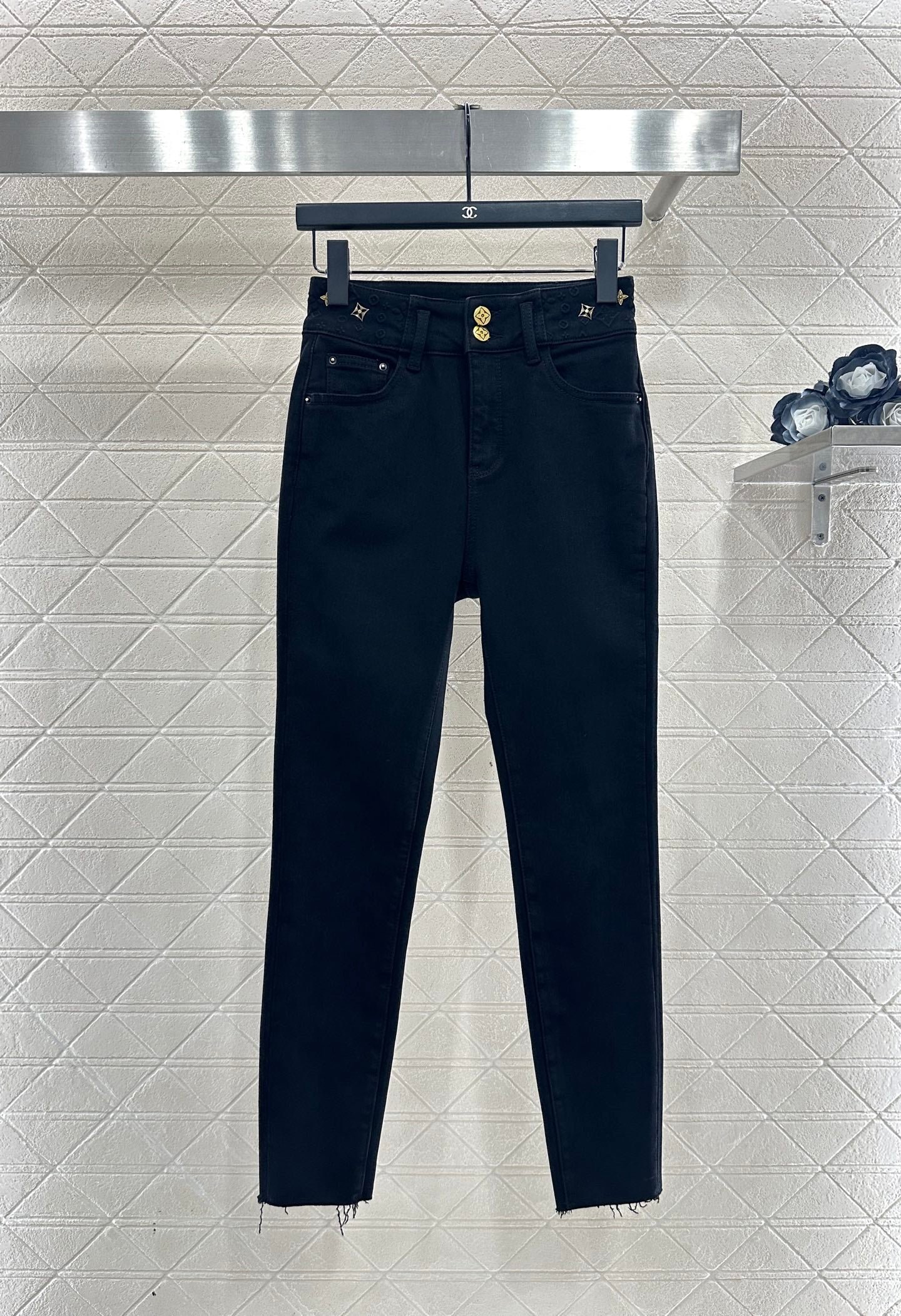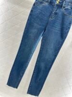 Cotton denim material, soft and comfortable fabric, elastic and slim fit, repeatedly treated with enzyme washing process, evenly dyed and not easy to fade. High waisted double buckle and double pocket design, with concave and convex hidden patterns at the waist ➕ The metal clover logo embellishes the brand’s style instantly, and the pencil pants version accommodates and modifies the leg shape while elongating the proportion and adding thick velvet inside. It can also be worn in autumn and winter with a full high street fashion style, versatile and divine pants