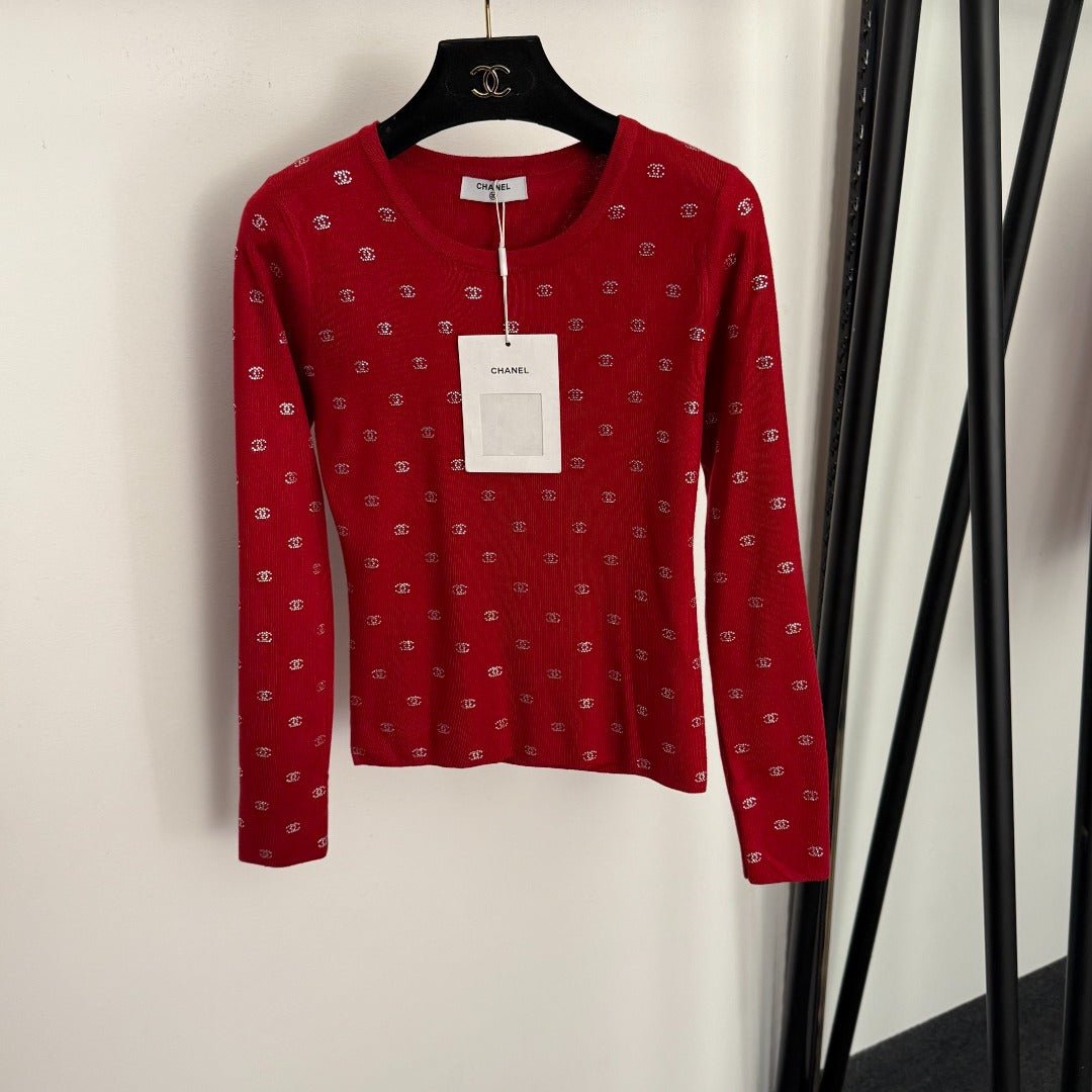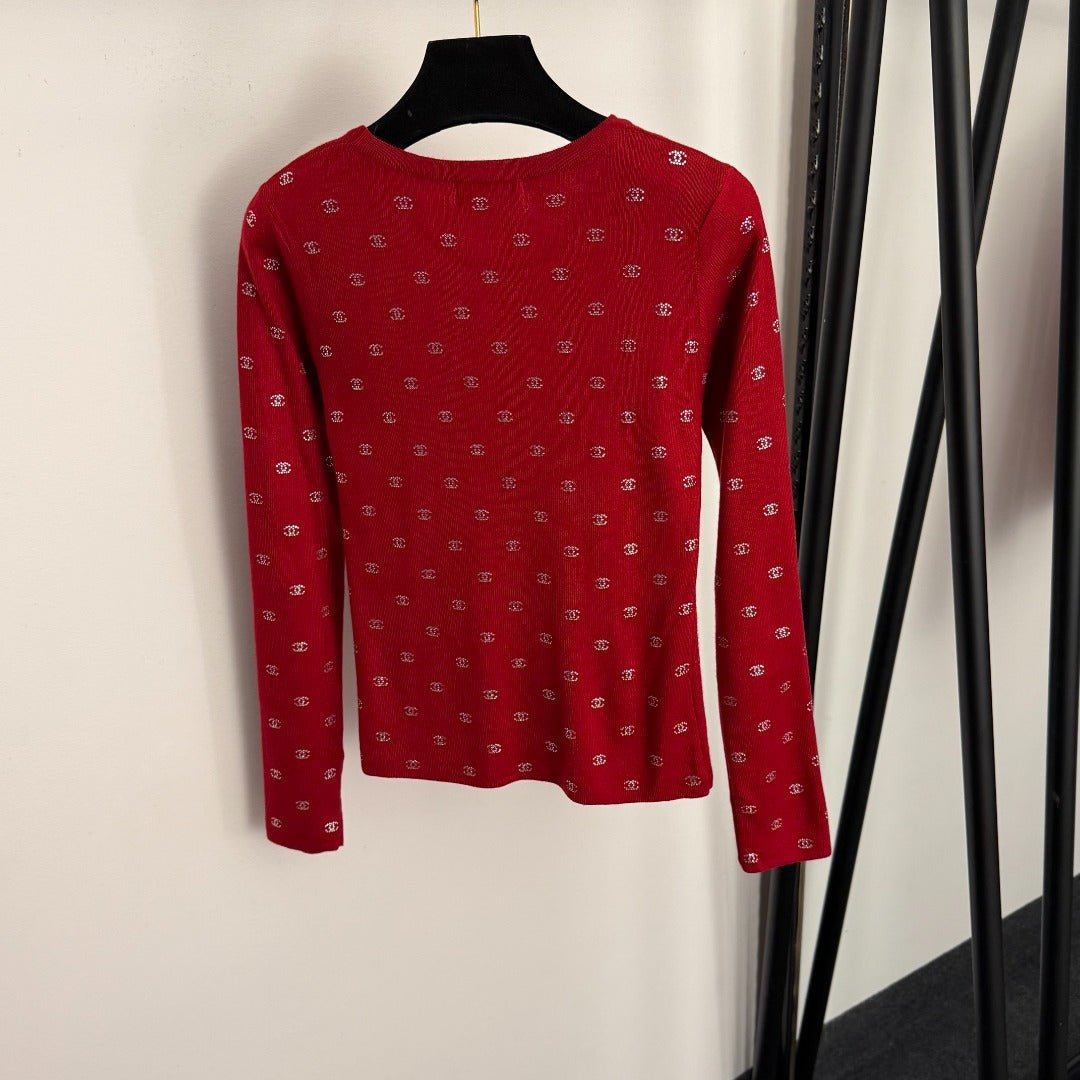 Rhinestone long-sleeved