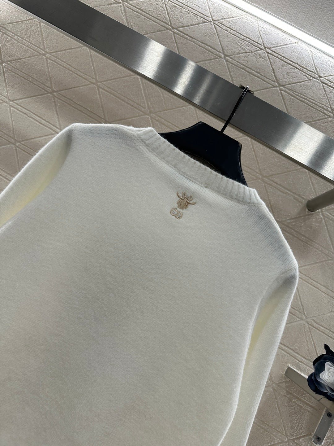 Crafted from wool yarn, this comfortable and high-quality round-neck knit pullover sweater features a large, centrally embroidered logo with a scattered starry sky motif, echoed by a bee logo at the back neckline. The ribbed elastic trim provides a snug fit for warmth and freedom of movement. The classic fit ensures a stylish and fashionable look.