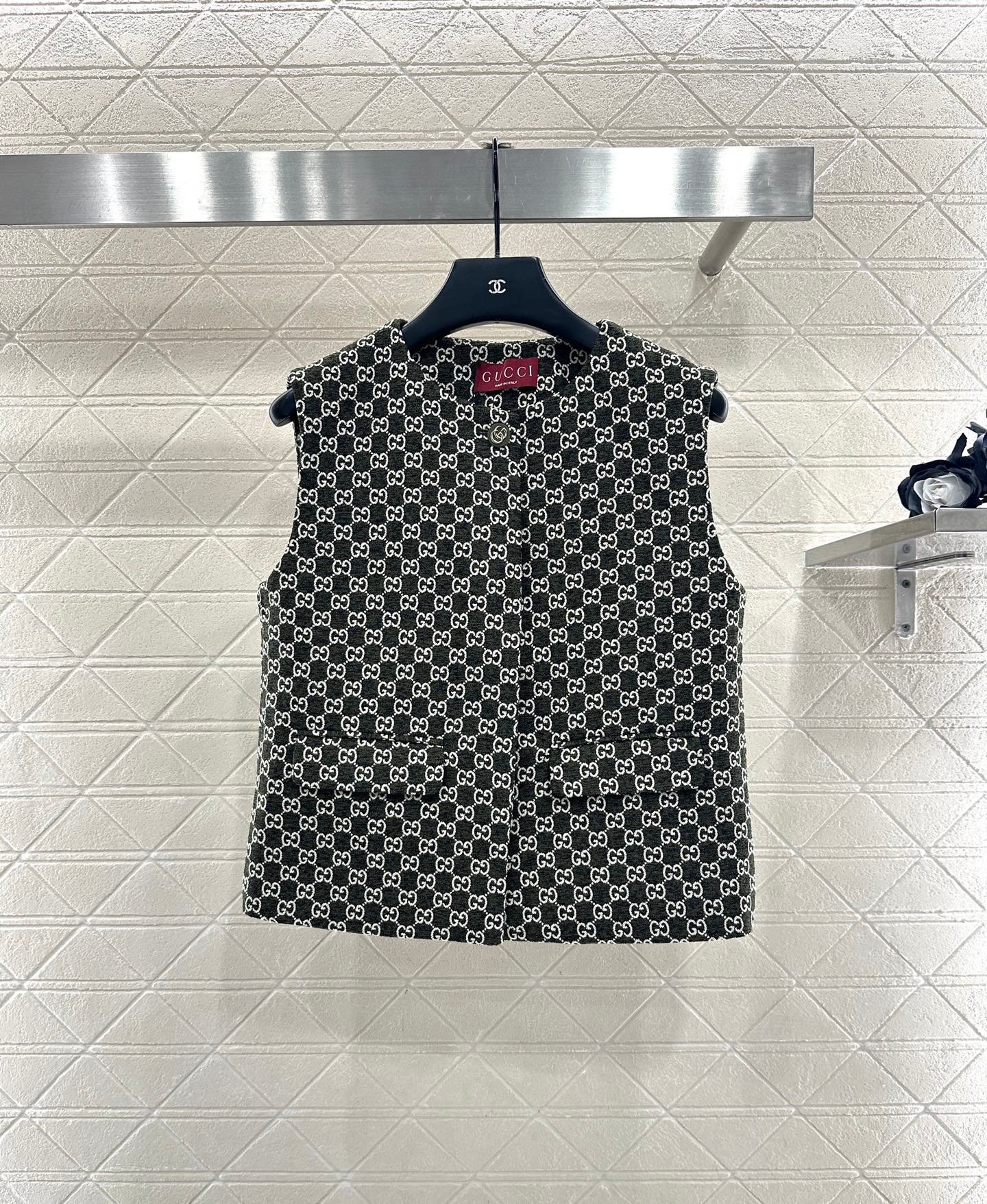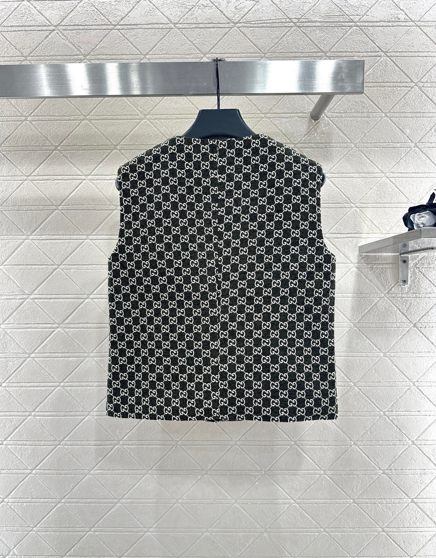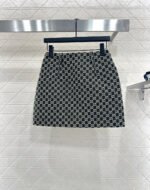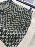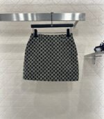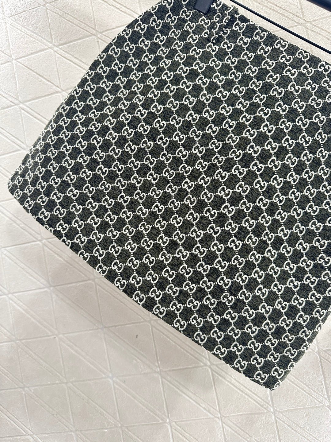 Made of wool jacquard material, the finished garment has excellent texture and appearance. The collar and shoulder suit short skirt set is tailored with a button open design and three-dimensional cutting to create a fashionable and neat style. The collar and front placket are single row engraved with letters and double G round buttons, and the large white green color scheme adds a sweet and elegant atmosphere. The details highlight the brand style. The flip pockets on both sides are matched with the same series of straight tube short skirts, and the details echo the must-have for autumn and winter. It looks tall and slim, versatile and can hold different occasions with a strong aura