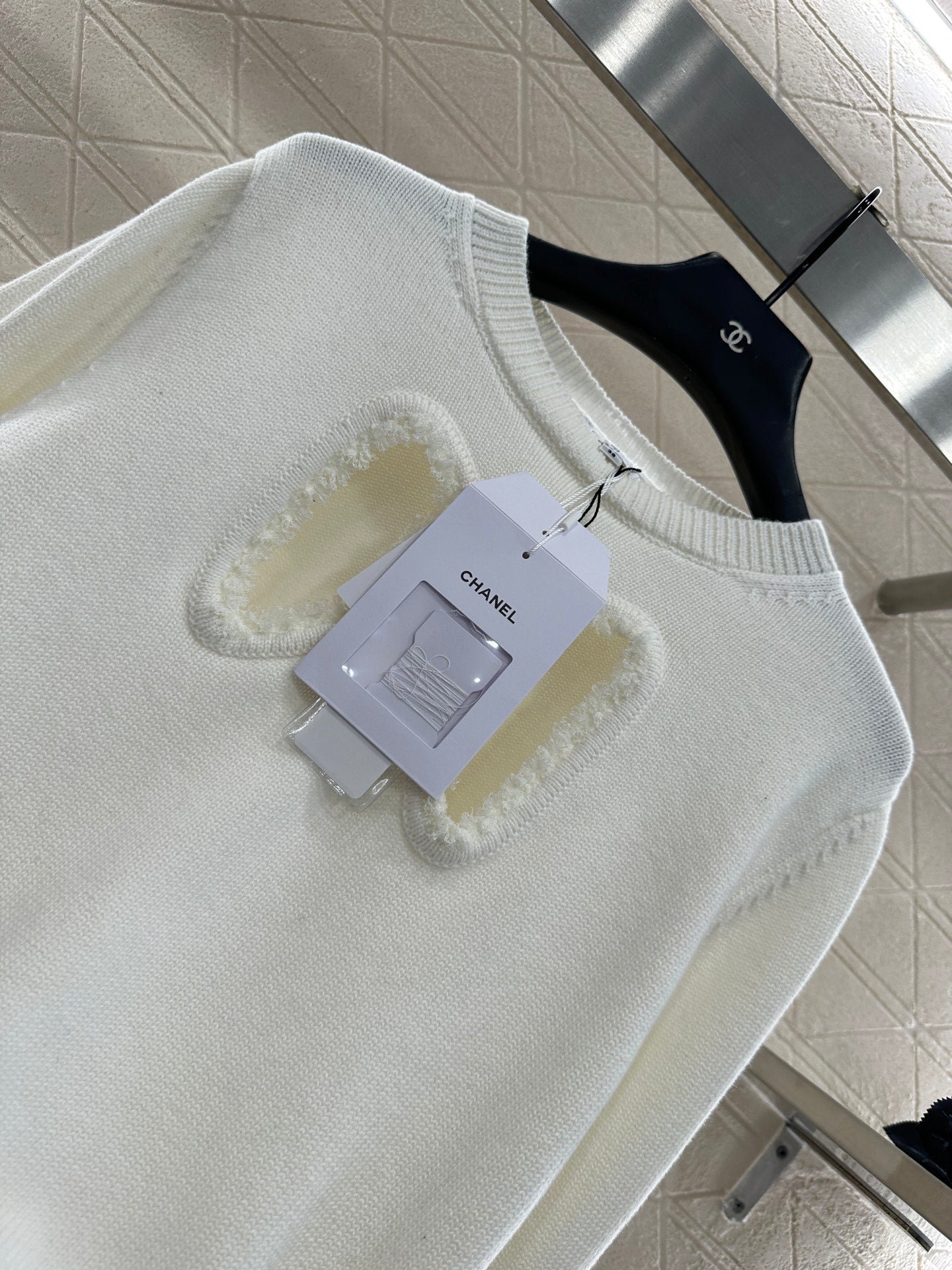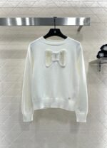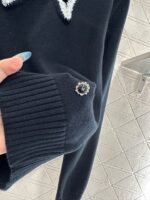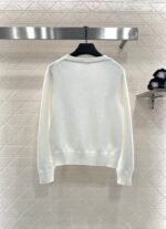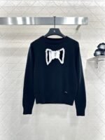 Crafted from soft and breathable wool yarn, this classic crewneck knitted sweater features an elasticated design that creates a slimming visual effect. The cut-out detailing revives the bow effect, while the interplay of black and white colors at the chest, along with frayed edges, adds dimension. The double C-round buttons at the hem echo the brand’s positioning, exuding a chic and stylish vibe. Perfect for both standalone wear and as an inner layer, it delivers effortless fashion appeal.