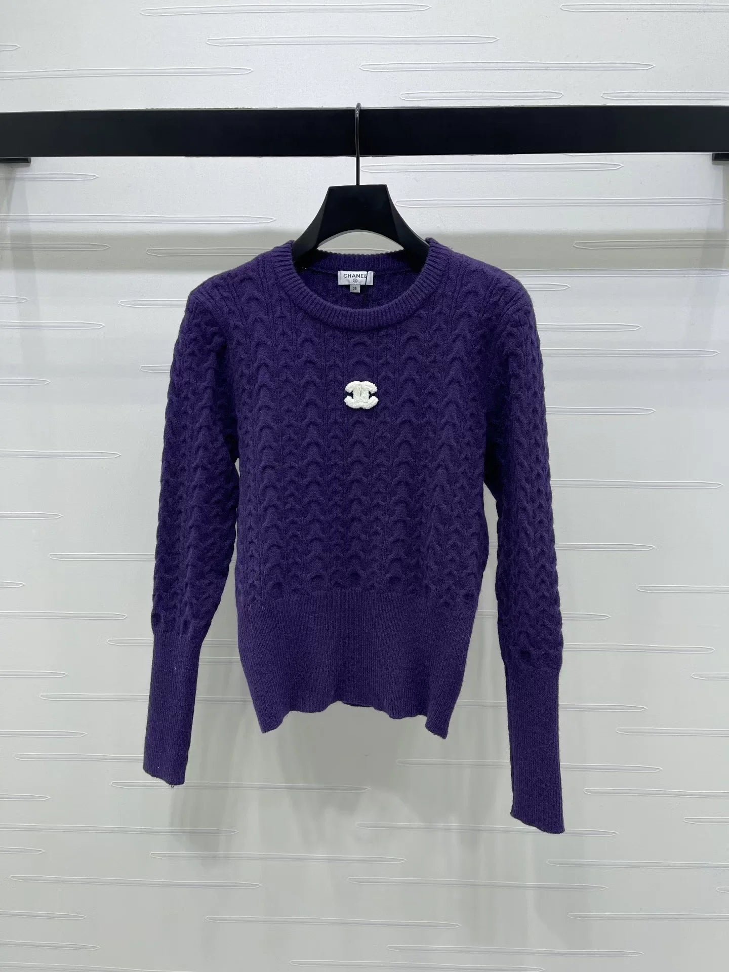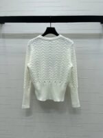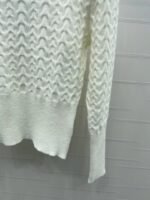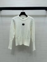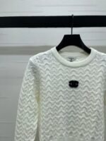 Wool knit material is delicate and comfortable, with a full round neck long sleeved top. The cut is full of three-dimensional patterns and textures, highlighting a gentle temperament. The waist thread is trimmed to show a slim waistline, creating a good figure and proportion. The chest letter logo adds a sense of hierarchy