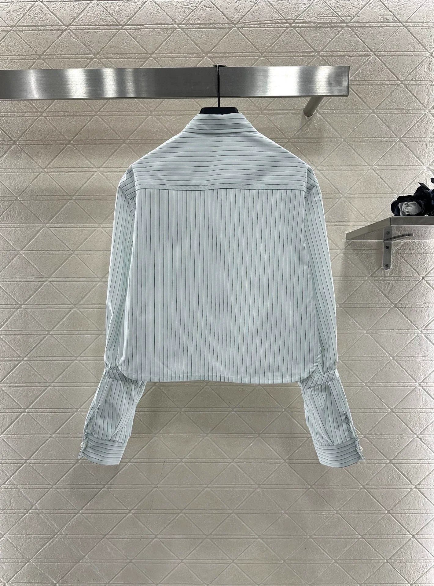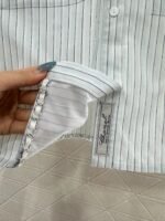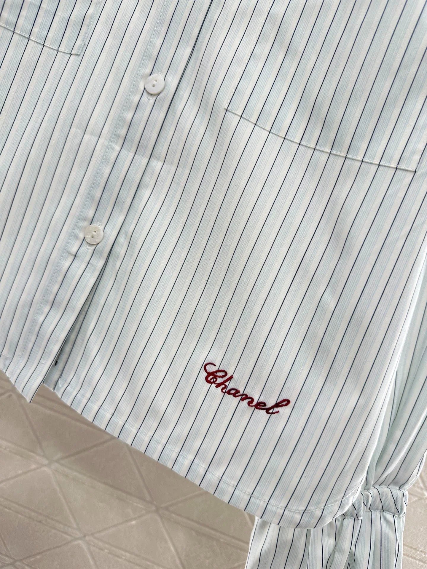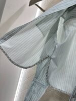 Made of all cotton material, with a comfortable and delicate texture, this short sleeved shirt features a versatile vertical stripe cut and a fresh color scheme. The sleeves are symmetrically tied and embellished at the forearm, paired with an inner front chain ➕ Decorative with a fabric patch logo, echoing the embroidery at the hem, the layered design highlights the brand’s style, and the upper body is full of lazy and fashionable atmosphere. It can be easily matched with a skirt or pants, and the exquisite level is instant. It is a basic shirt that can be used for daily commuting and vacation, making it easy to wear and match with a Western style