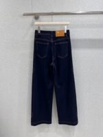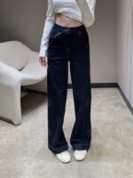 Selected vintage washed denim fabric with rich color and crisp texture, after special processing, the visual focus is undoubtedly the embroidered double C logo on the side: the classic double C pattern outlined by golden embroidery thread is scattered along the pants body, with a sense of luxury accumulated by time; The high waisted cut neatly embellishes the waistline, while the wide leg design allows for a casual and elongated look, exuding a French lazy tone while walking