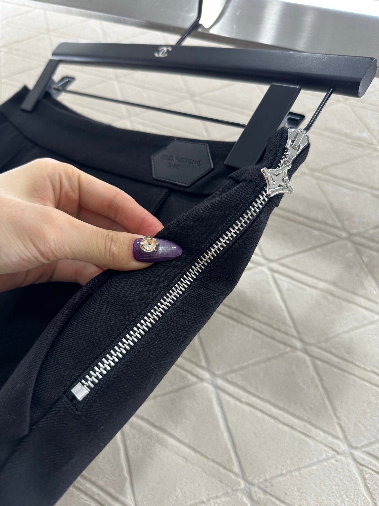 High elasticity material, comfortable elasticity, high waisted straight leg pants version, decorated with four leaf clover letter logo at the waist, echoing the four leaf clover zipper buckle on the waist and side, adding a touch of brightness to the overall look, suitable for various styles of tops, easy to wear, slim fitting and slimming, high-end versatile