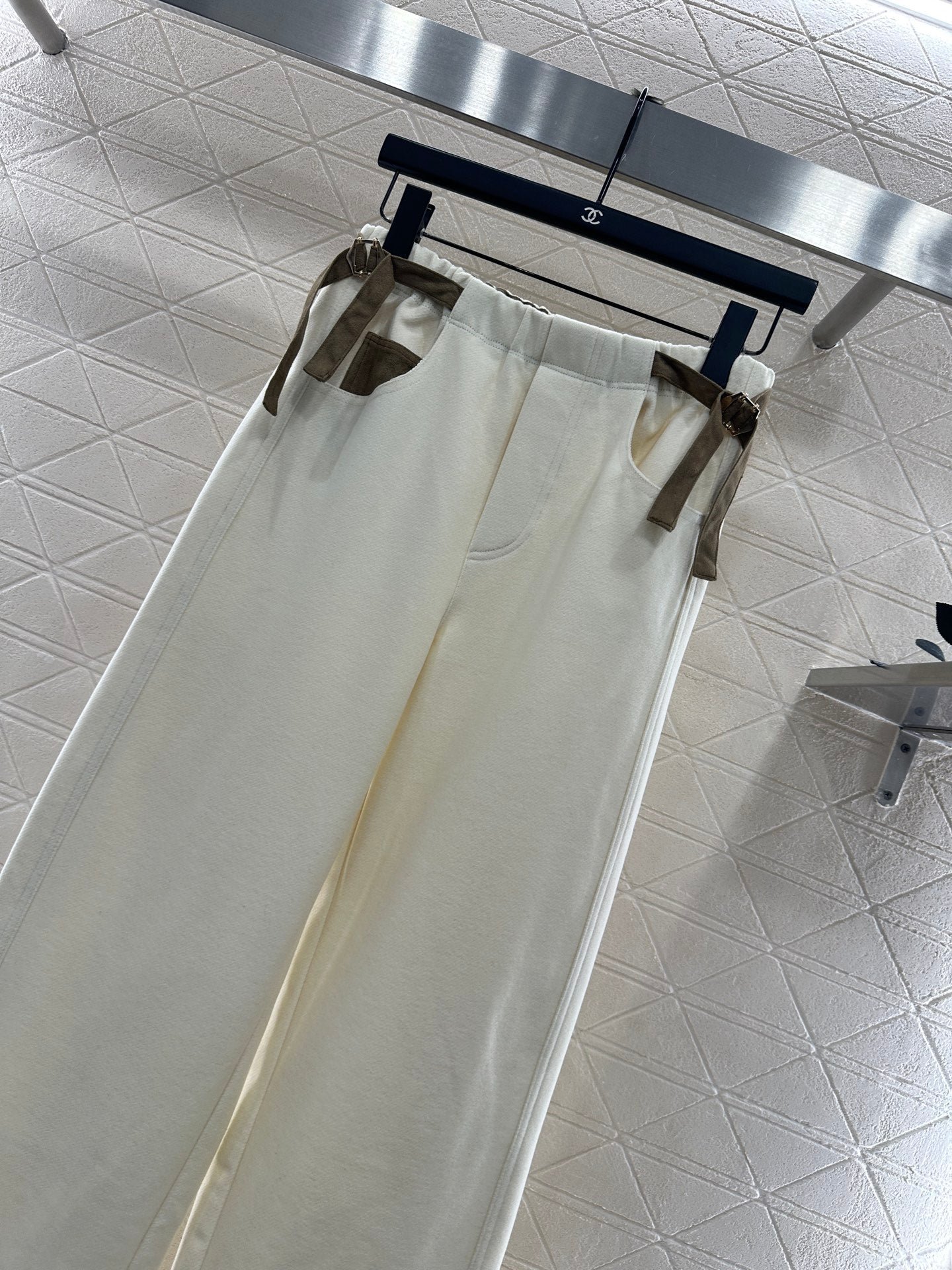 Side waistband straight leg pants