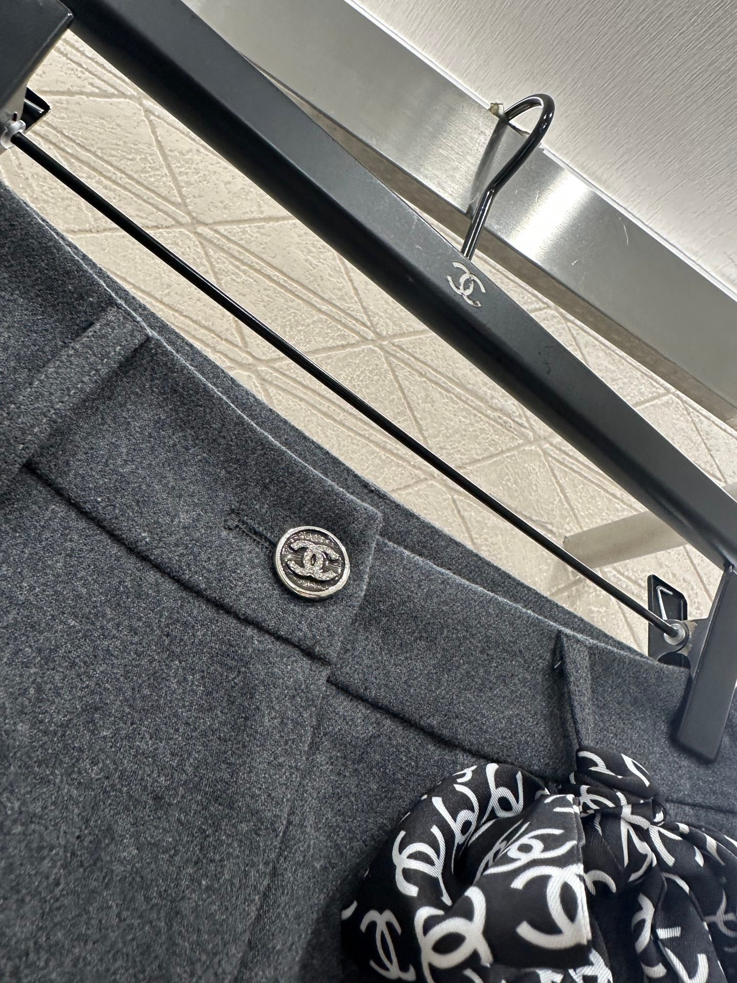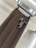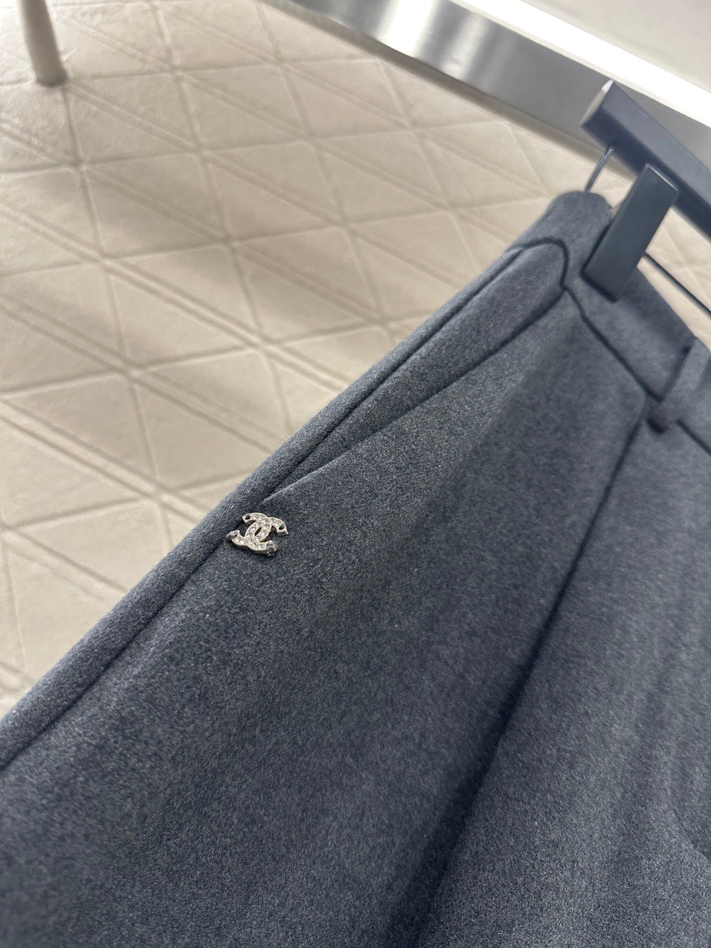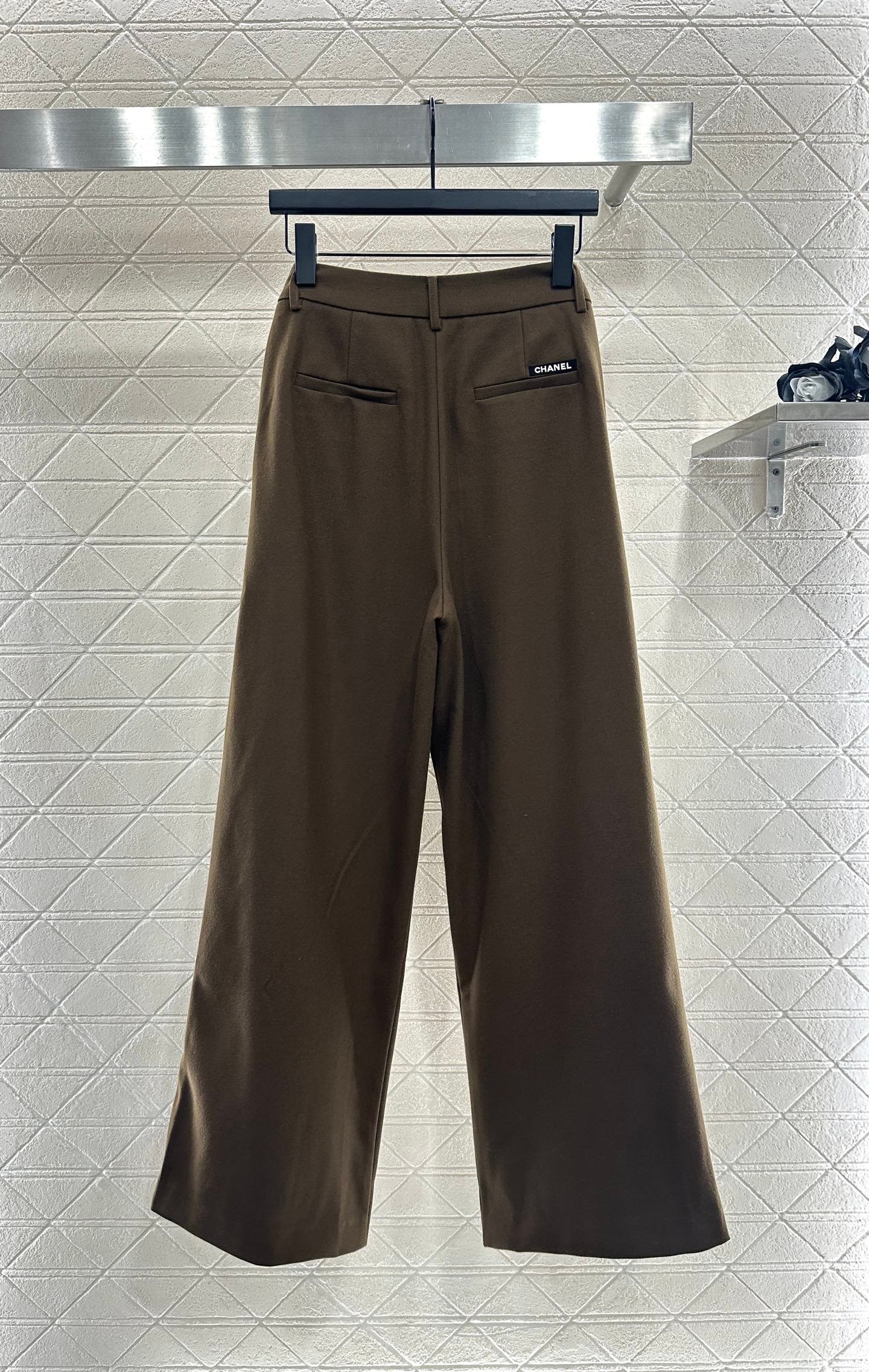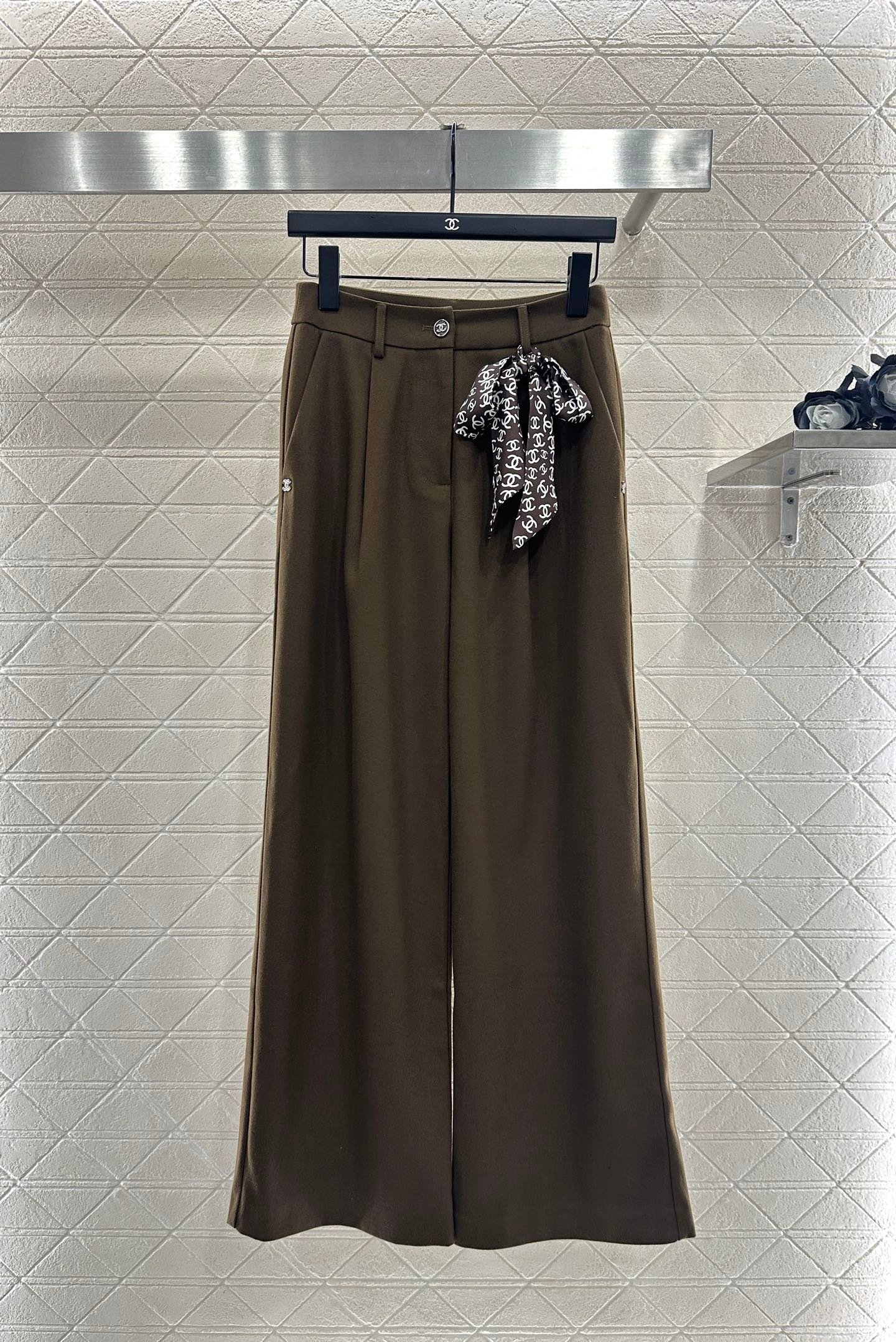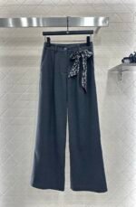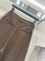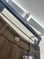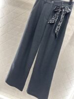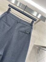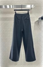 Made of woolen material, the texture is thick and comfortable to hang down. The high waisted wide leg pants are designed with a three-dimensional cut that enhances the overall texture. Paired with rhinestone double C accents in the pockets, the high waisted center buckle echoes, highlighting the brand’s style and standing tall and neat posture. The waist and crotch ribbons highlight playful vitality, while the double C full layer design details create a dynamic feel, making the outfit more coordinated, high-end, and fashionable.
