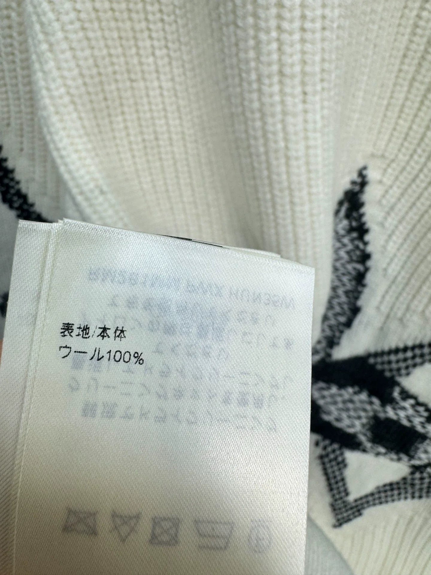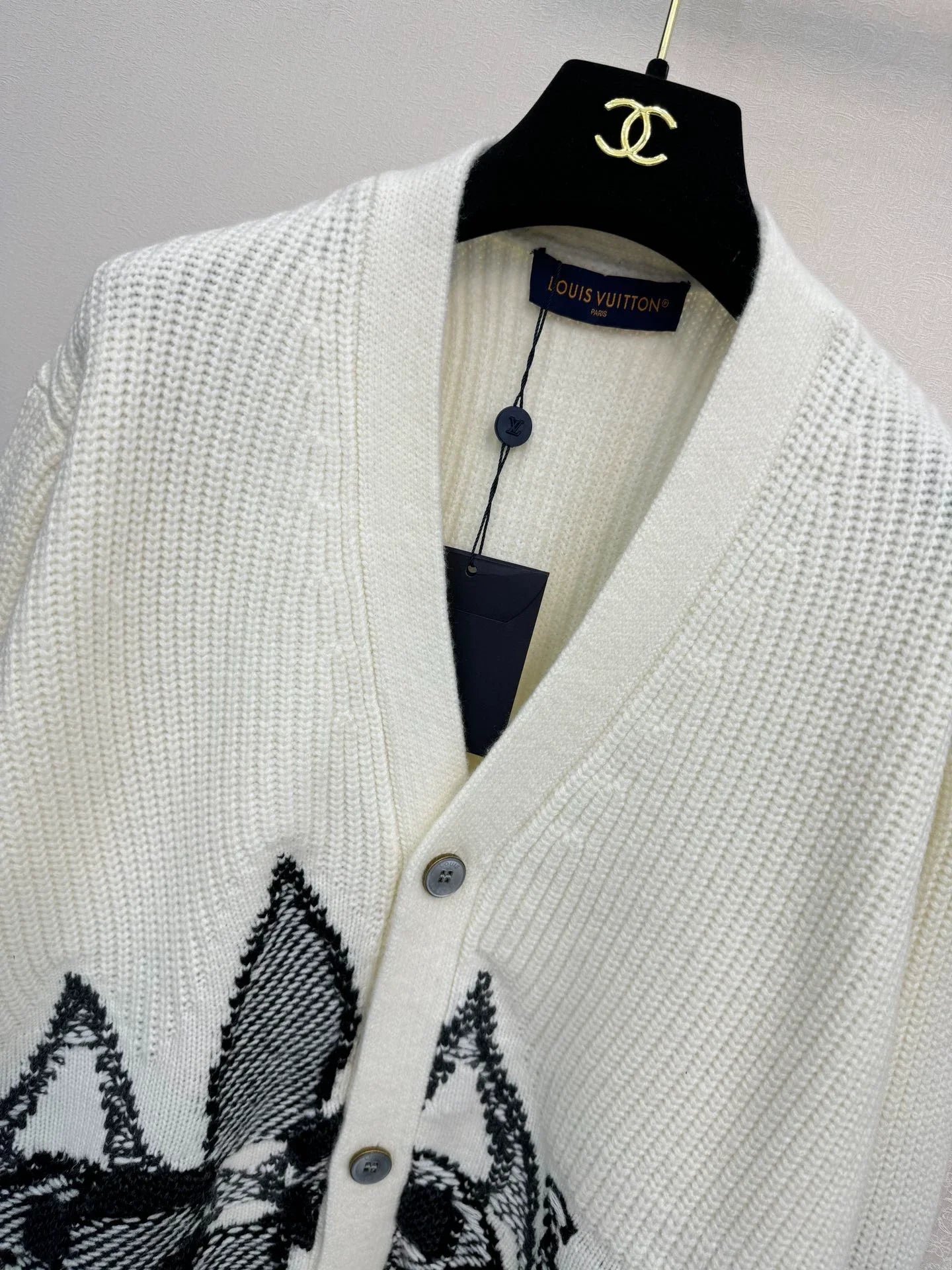 The beige base color is paired with a black triangular pattern, featuring a classic Monogram design.