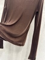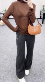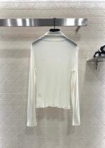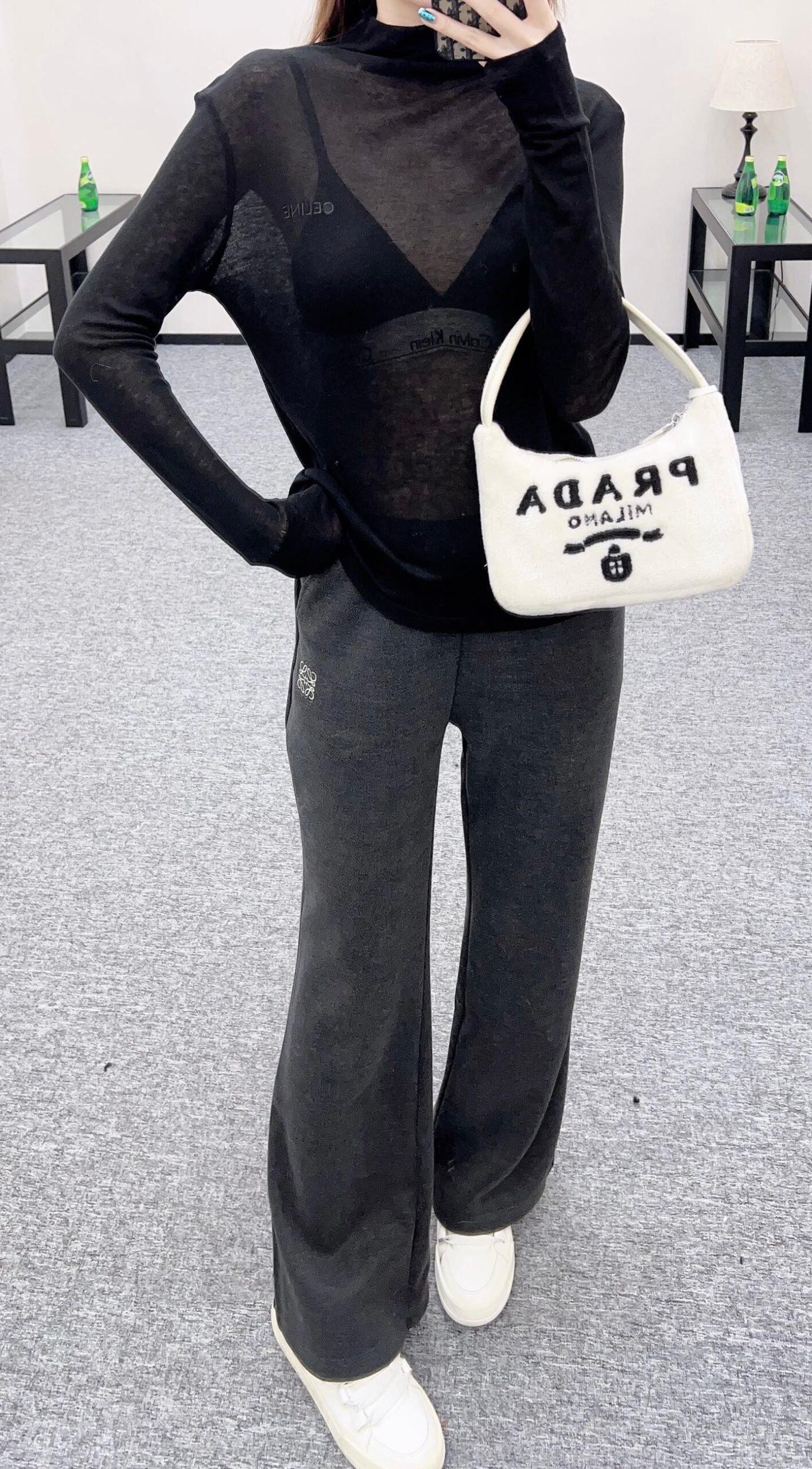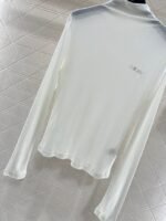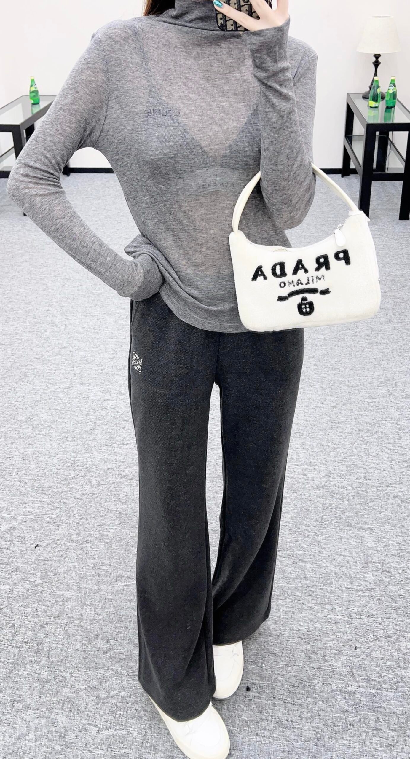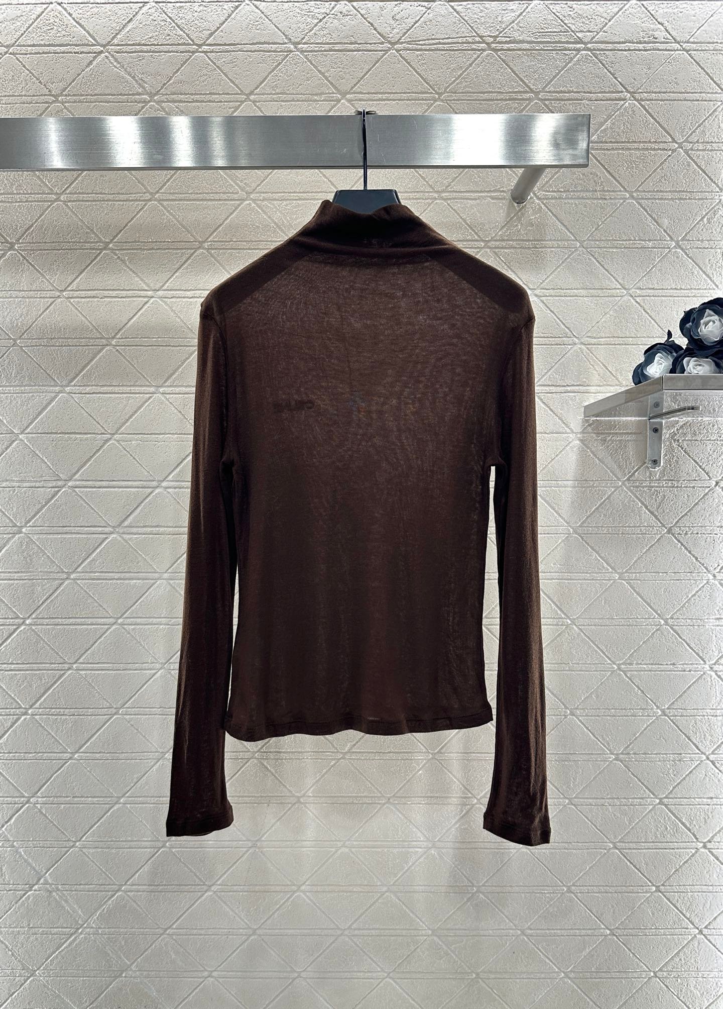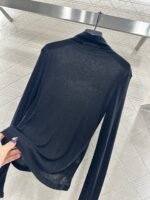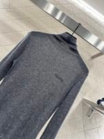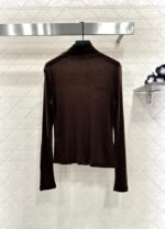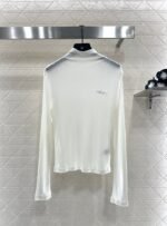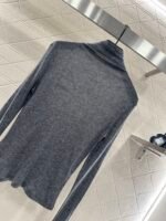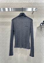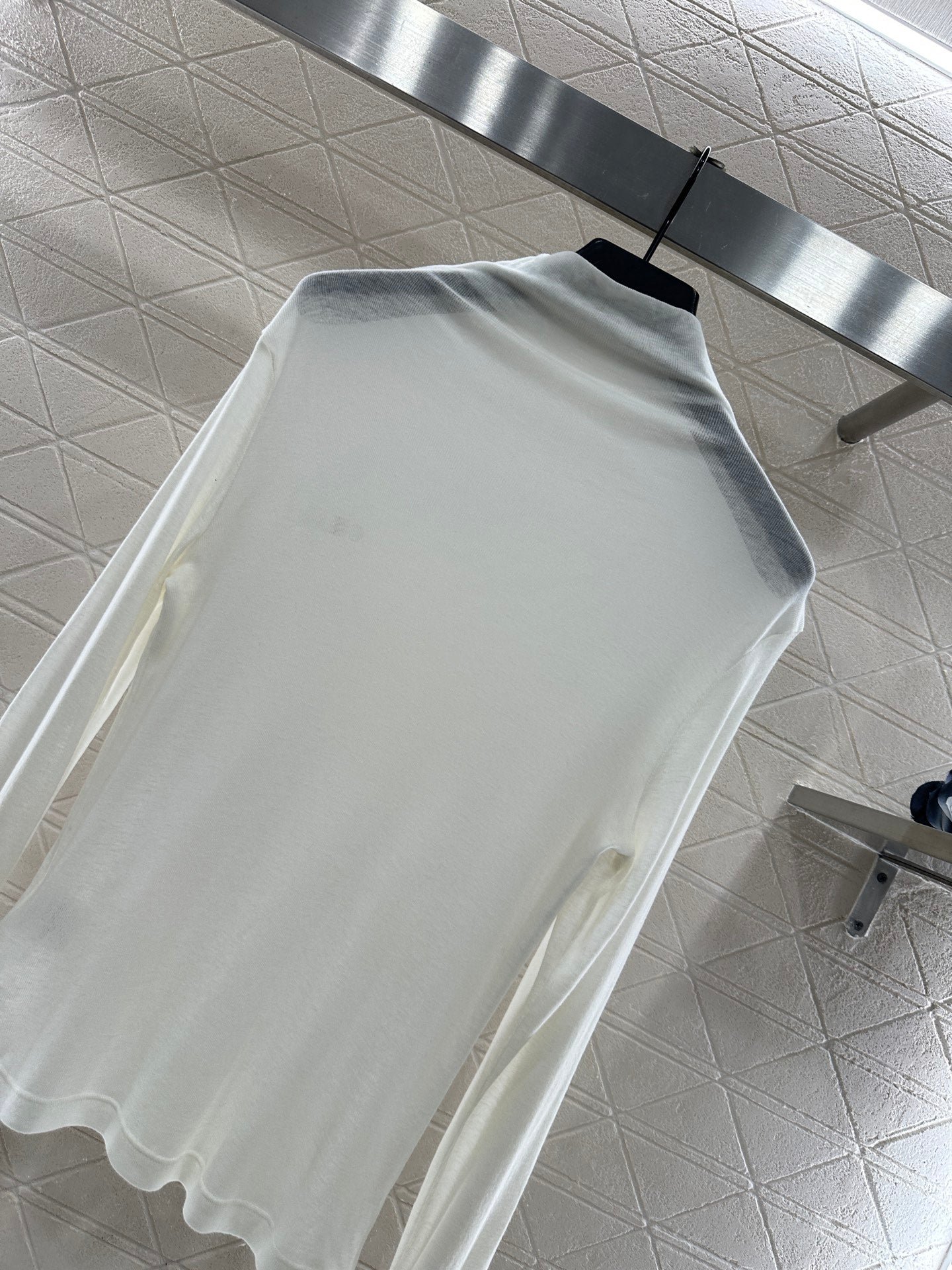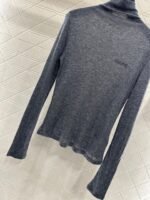 Wool material, comfortable texture, full elasticity, slim fit high neck base cutting, embroidered logo with letters sewn on one side of the chest, highlighting the brand style, full of elastic fit, visually narrowed and elongated, highlighting the slimming effect of women, fashionable and eye-catching when worn alone