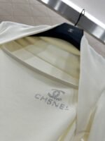 Cotton wool material, comfortable texture, good elasticity to wear, flat cut shoulder wrapped long sleeved top, layered design around the armpits to both sides of the shoulders, covering the accessory breast and exposing the collarbone for a slimmer look. The black and white solid color is versatile and durable, with the iconic double C letter logo decoration on the chest, using hot diamond reflection to increase luxury and get rid of boring monotony. The slim fitting cut fits the body shape, making the outfit look slim and high-end, showing elegant autumn and winter interior wear. It is suitable for daily commuting, dating and leisure 👌