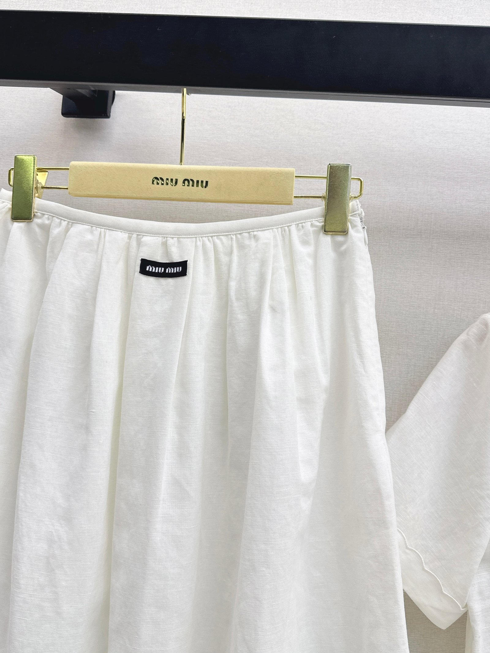The actual product is so beautiful! It exudes elegance. The classic cropped cut makes the legs look longer and gives a relaxed, effortless vibe. The Tencel-linen blend fabric is lightweight and breathable. The small logo badge decoration adds a touch of detail.