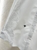 Made of all cotton material, with a glossy texture and comfortable breathability, this long sleeved shirt has a sleek and loose silhouette cut. The large body is available in black and white plain colors, making it versatile and not picky about atmosphere or age. Irregular lace is embellished around the edges, paired with a cute bee shape, to reduce the aging temperament.