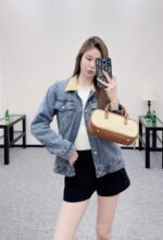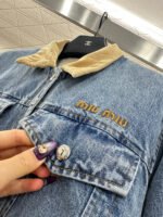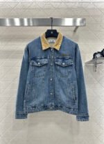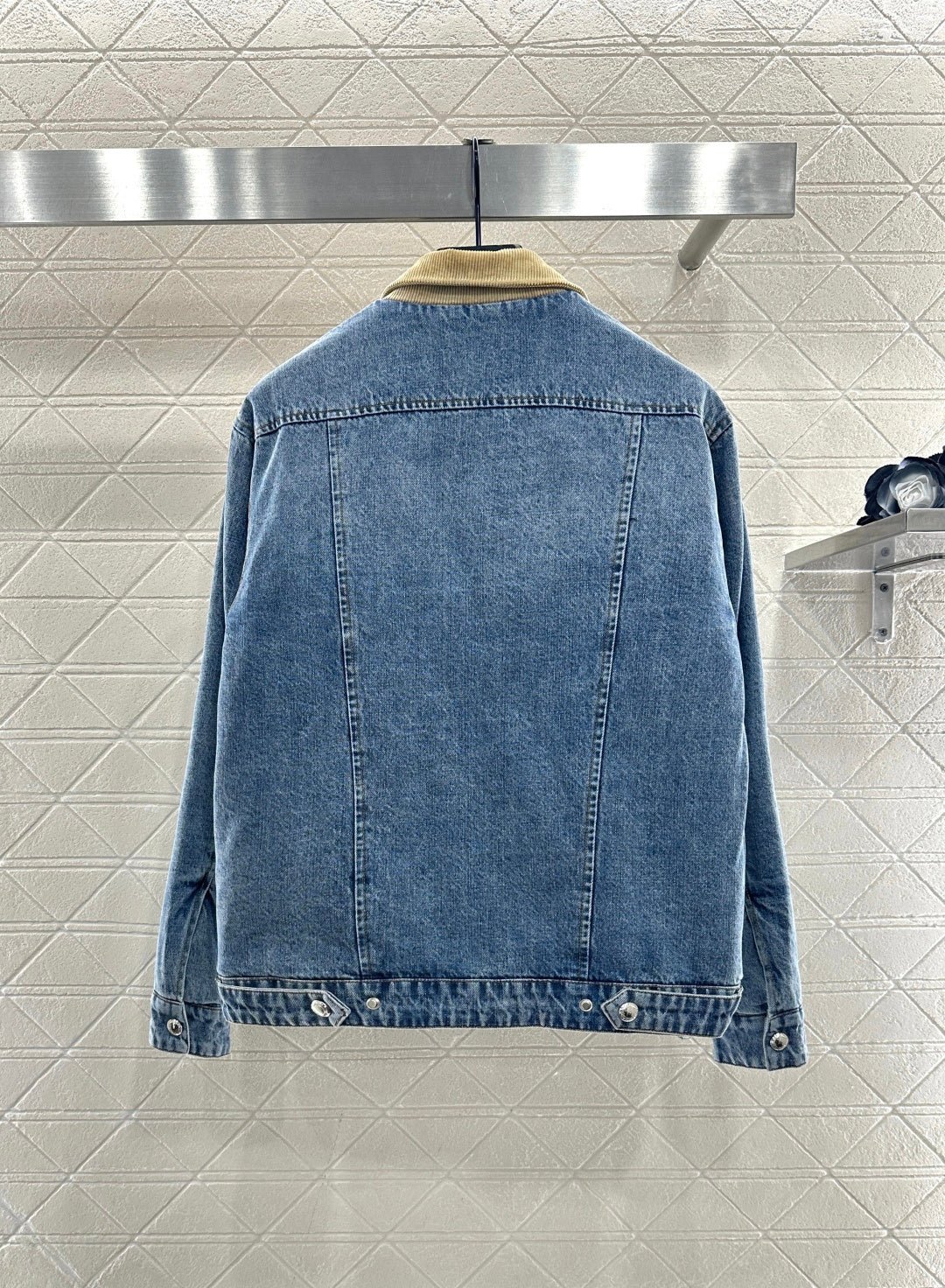 The twill cotton denim material is treated with teddy particle velvet inside, providing warmth and cold resistance. The outer layer is processed with enzyme water washing technology, creating a vintage effect by grinding white. It is fashionable and stylish, with a corduroy collar and patchwork denim jacket, symmetrical flip pockets, and contour lines, combining fashion and leisure atmosphere. Color collision elevates the sense of handsomeness, with iconic three-dimensional letter logo decorations on the chest, enhancing the texture of details. It can be easily switched between different occasions, making it a must-have for sweet and cool girls. A must-have item for autumn and winter, with worry free warmth performance