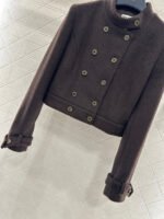 Made of artificial cotton material and processed with craftsmanship, it presents a plush texture that is soft and delicate, with better insulation performance. The short stand up collar jacket features an old double row printed button design and a cuff buckle that echoes the brand tone. Paired with straight leg pants of the same series, the hanging texture is matched with three-dimensional cutting, giving it a stylish look. The complete set is simple yet fashionable, making it easy to handle for daily commuting
